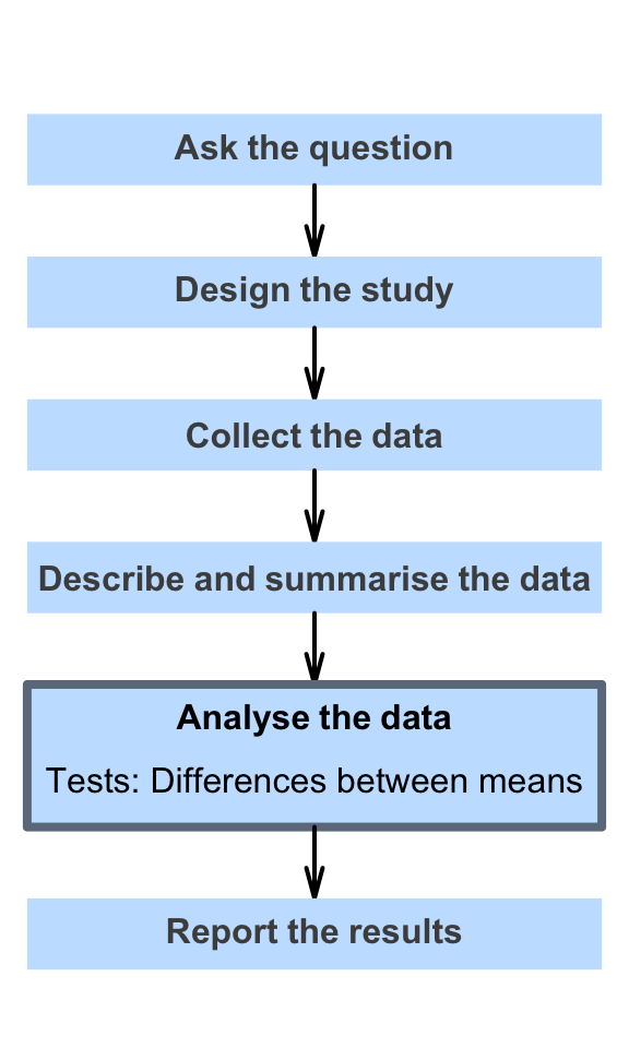 So far, you have learnt to ask a RQ, identify different ways of obtaining data, design the study, collect the data describe the data, summarise data graphically and numerically, understand the tools of inference, and to form confidence intervals.