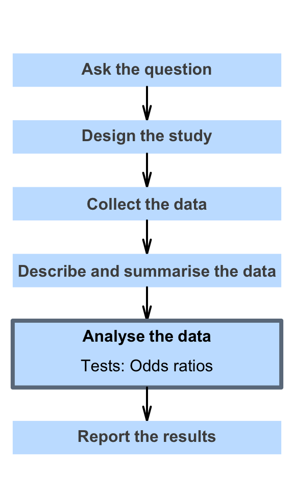 In this chapter, you will learn about hypothesis tests for odds ratios. You will learn to: