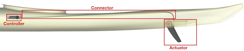 The connector subsystem. The cord runs within the tube from the skeg box to the ratchet box.