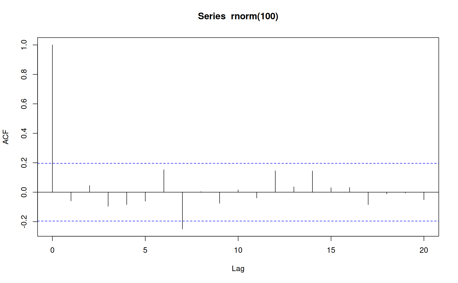 The above is a typical plot, with one statistically significant autocorrelation occurring at lag 7