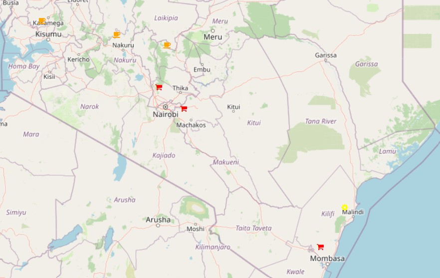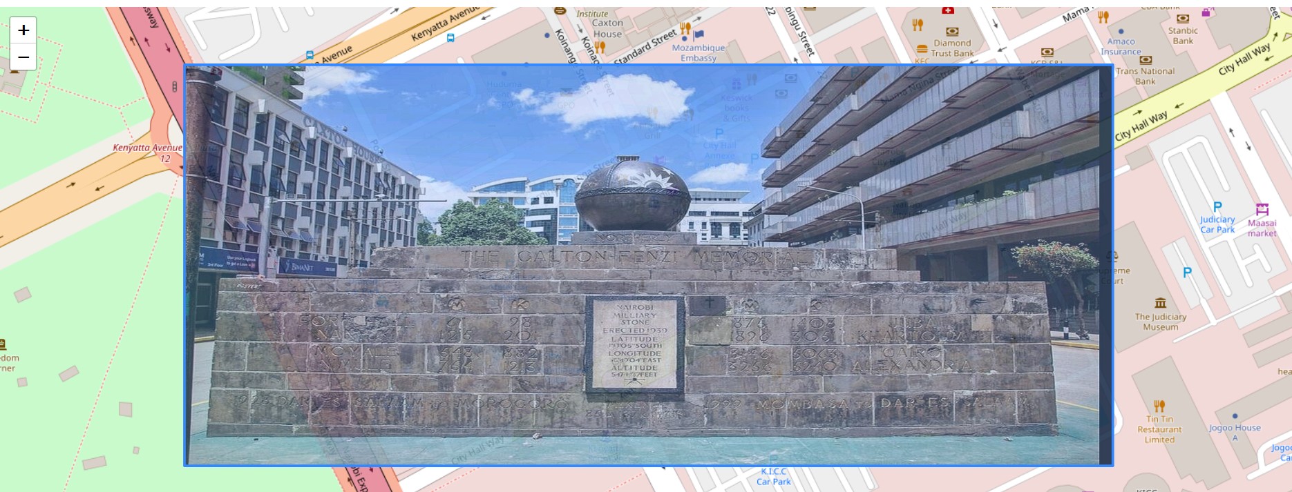 Sometimes an image can act as good a marker. Overlaying images on a map is fairly easy. The below code inserts an image above a historical monument located in the Kenyan capital, Nairobi.