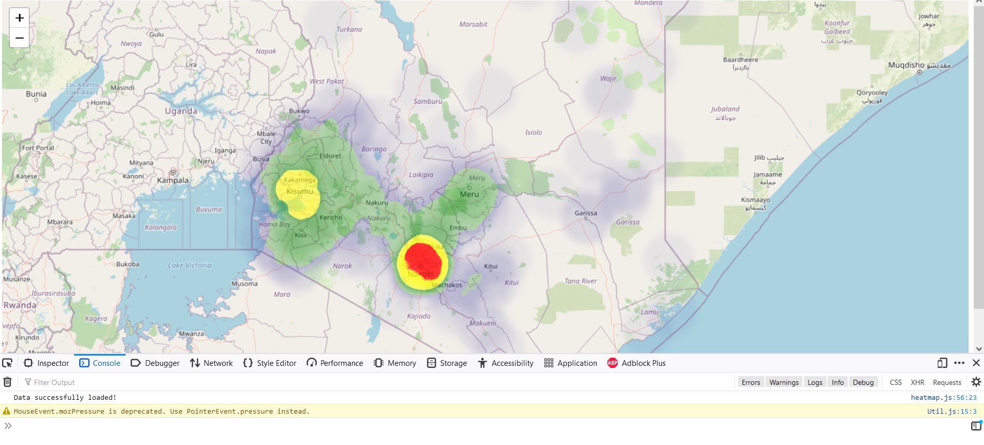 Leaflet.heatplugin. Thereafter, the path to the plugin is parsed to thescripttag of your HTML file.Apart from using L.heatLayer, the other alternative of creating heatmaps from GeoJSON data is through a combination of Ajax and jQuery.