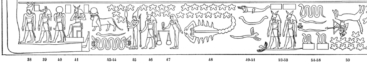 For the Zodiac signs from this table, see already Sauneron, Ménassa 1969, p. xiv. One might compare the similar representations from the round zodiac of Dendera: Aubourg 1995, p. 4, and photos from the Louvre. For general interest, I note some of the highlights below.