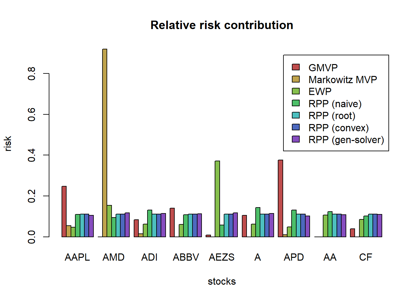 chart.StackedBar(t(w_all_GMVP_robust_box),