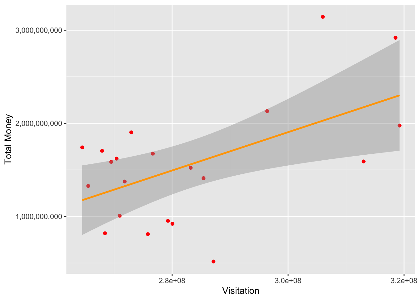 xlab("Visitation") + ylab('Total Money') +