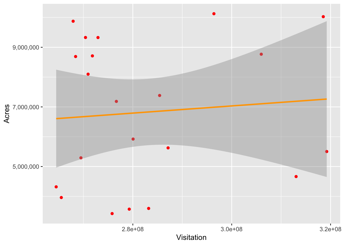 xlab("Visitation") + ylab('Acres') +