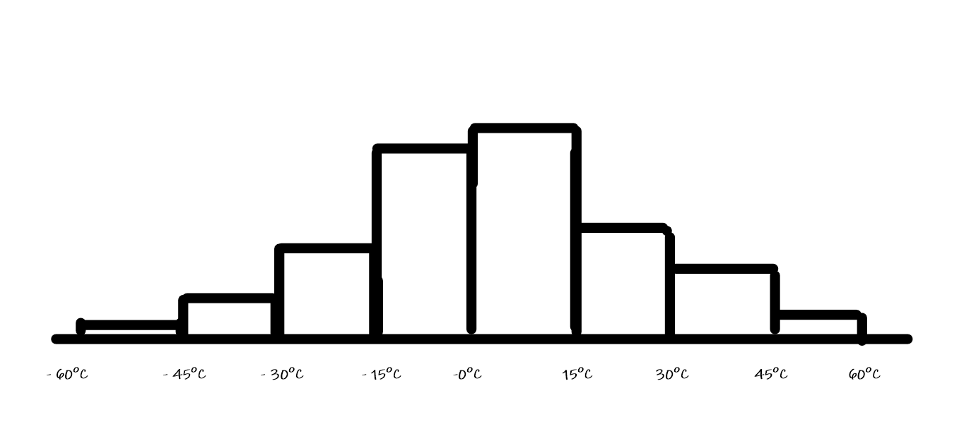 Sin lugar a dudas este planeta seguramente tiene un problema de calentamiento global, la cuestión es la siguiente, si realizamos un histograma de nuestras temperaturas, tendremos algo muy parecido a esto: