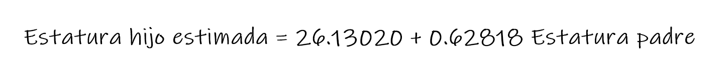 De una manera amigable, planteamos el modelo, por cada pulgada extra que el papá tenga, se puede esperar que en promedio la estatura del hijo aumente en 0.62818 pulgadas.