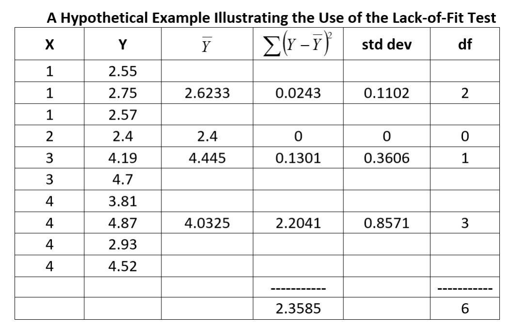 \(SSPE\): Pure Error Sum of Squares, which measures variation among replicates (observations with the same predictor value).