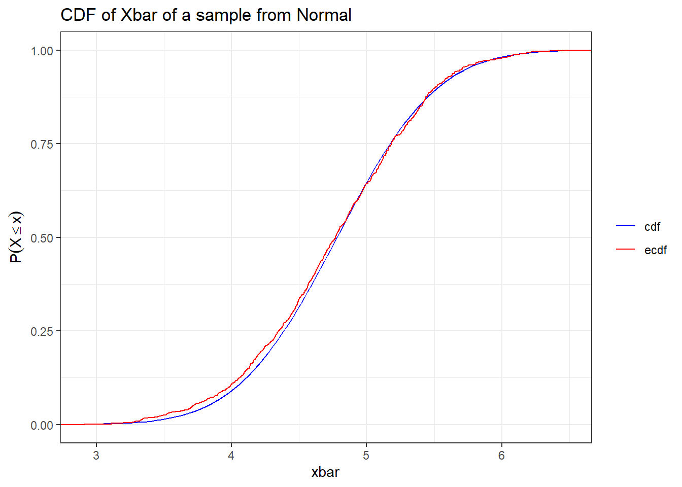 ggtitle("CDF of Xbar of a sample from Normal") +
