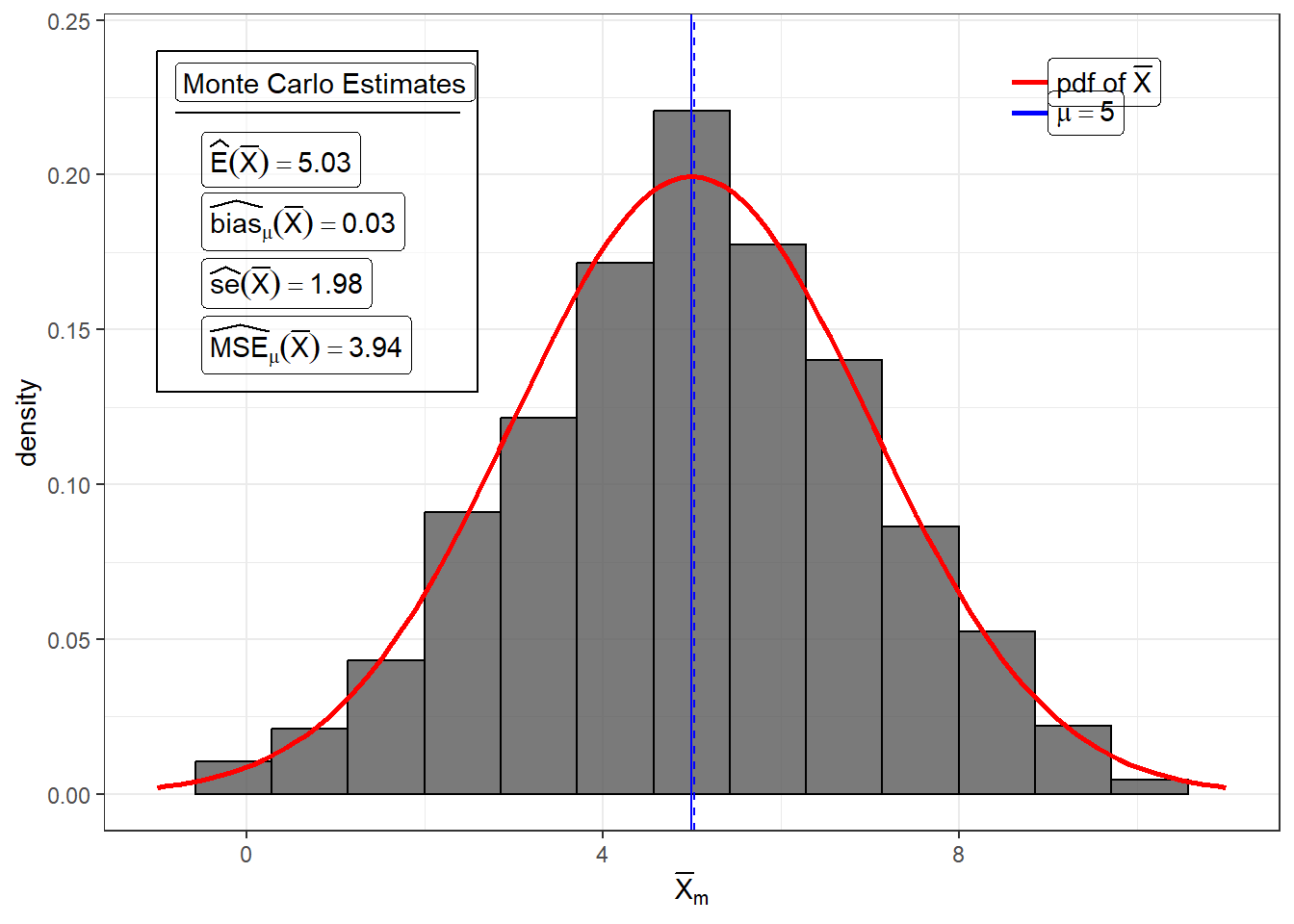Definition 10.5 A Monte Carlo estimate of the \(MSE\) of an estimator \(\hat{\theta}\) of parameter \(\theta\) is