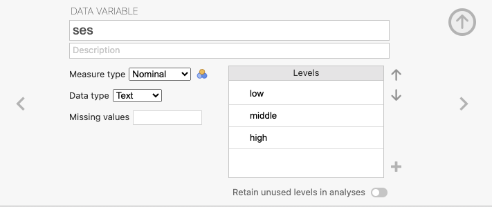 ขั้นที่ 1 โหลดข้อมูล multinomial.xlsx เข้า jamovi และแปรข้อมูลดังนี้