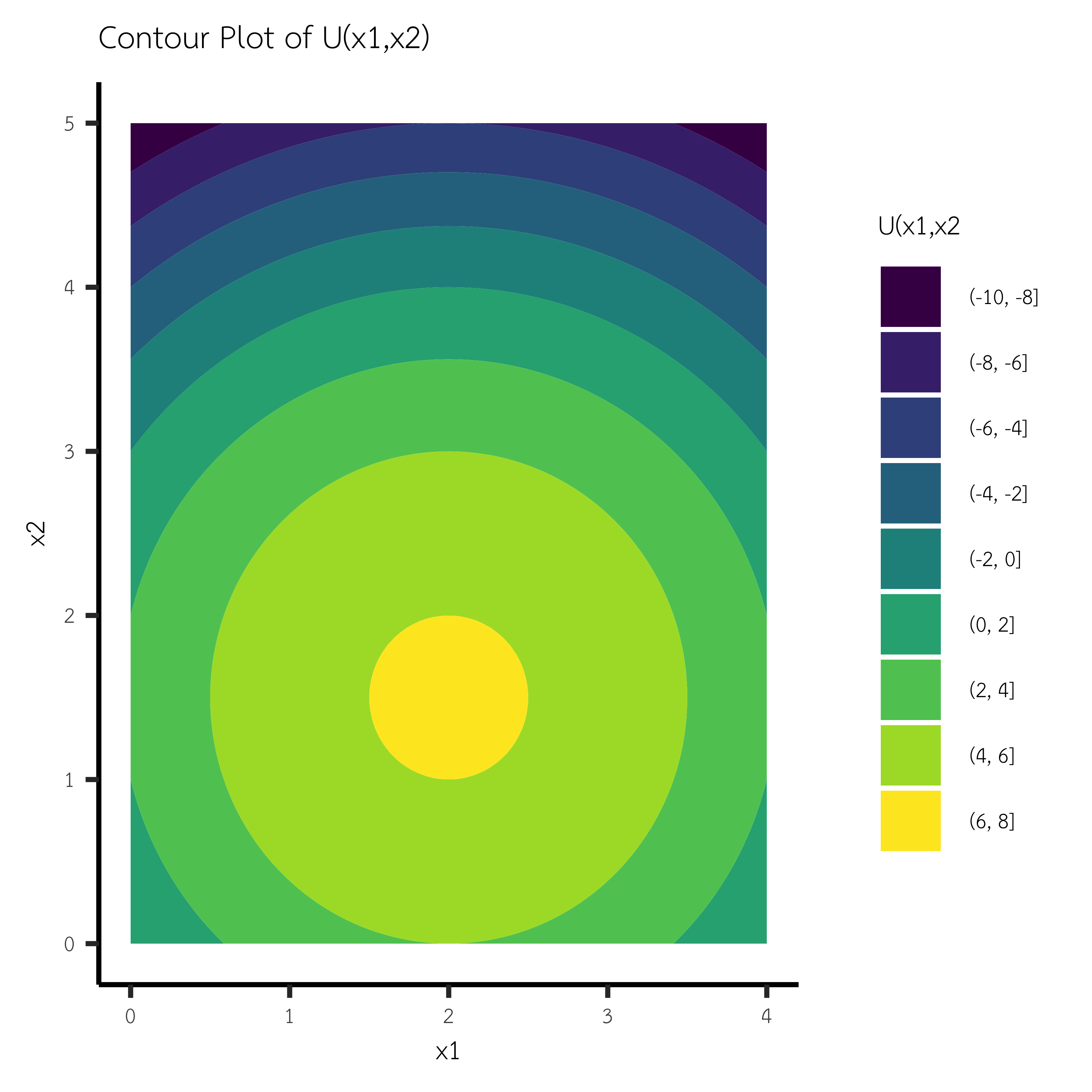 labs(title = "Contour Plot of U(x1,x2)",