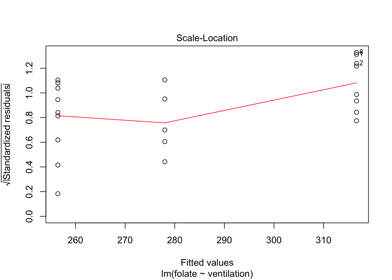 rcf.mod <- lm(folate~ventilation, data = red.cell.folate)