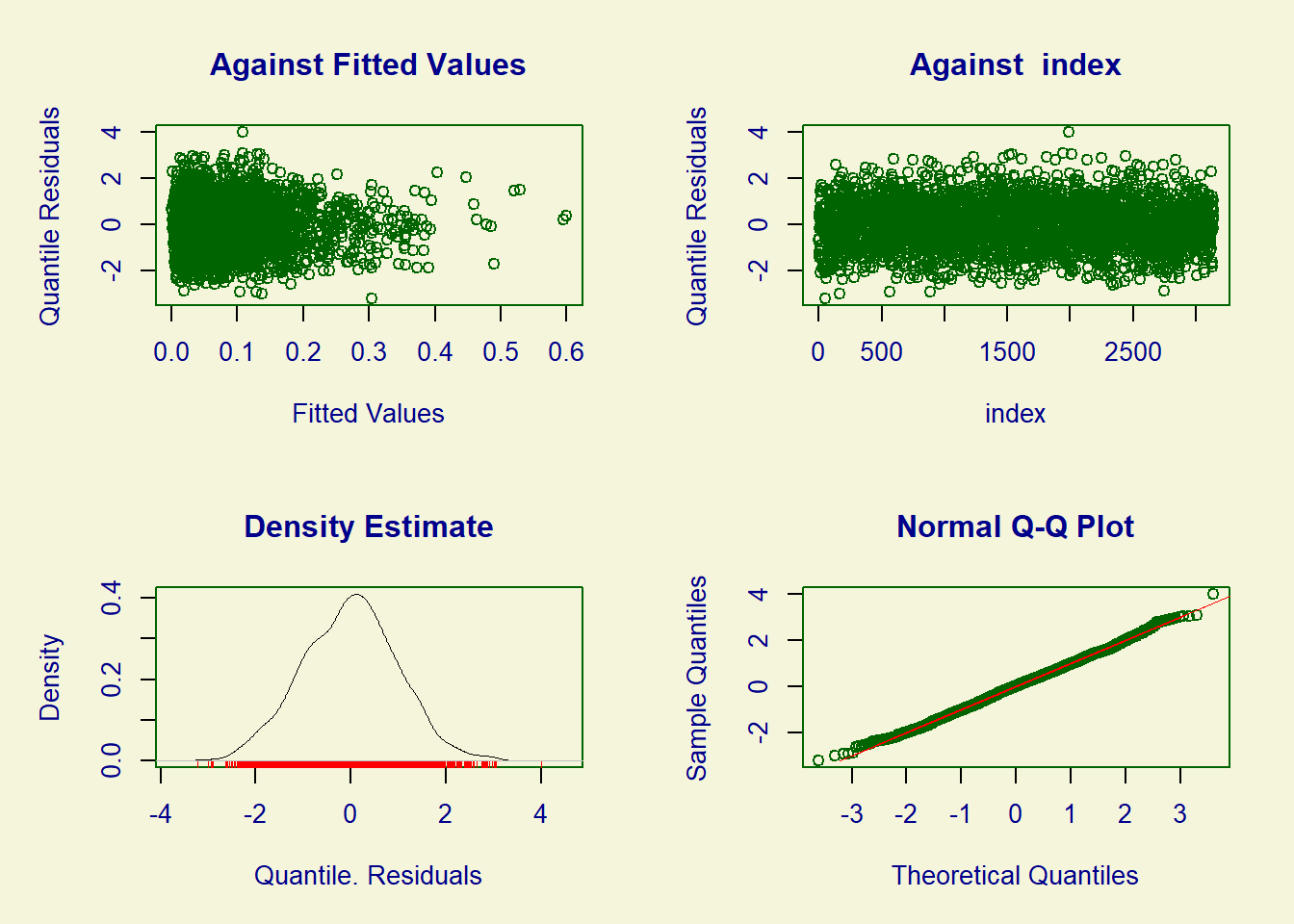 ## Summary of the Randomised Quantile Residuals