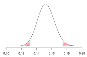 Consider an example where 10 chicks hatch and 4 survive. Bayes attempts to draw a conclusion, such as “The probability that \(p\) (survival) is between 0.23 and 0.59 is 0.80.” The two degrees of probability are an interval; \(Pr(a \leq p \leq b)\). The overall idea is similar to a confidence interval in trying to account for and reduce uncertainty—but confidence intervals are not probabilistic, so they are are not the same.