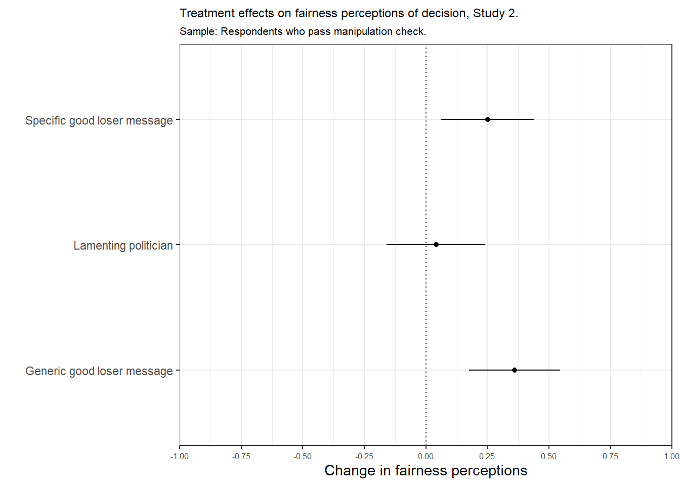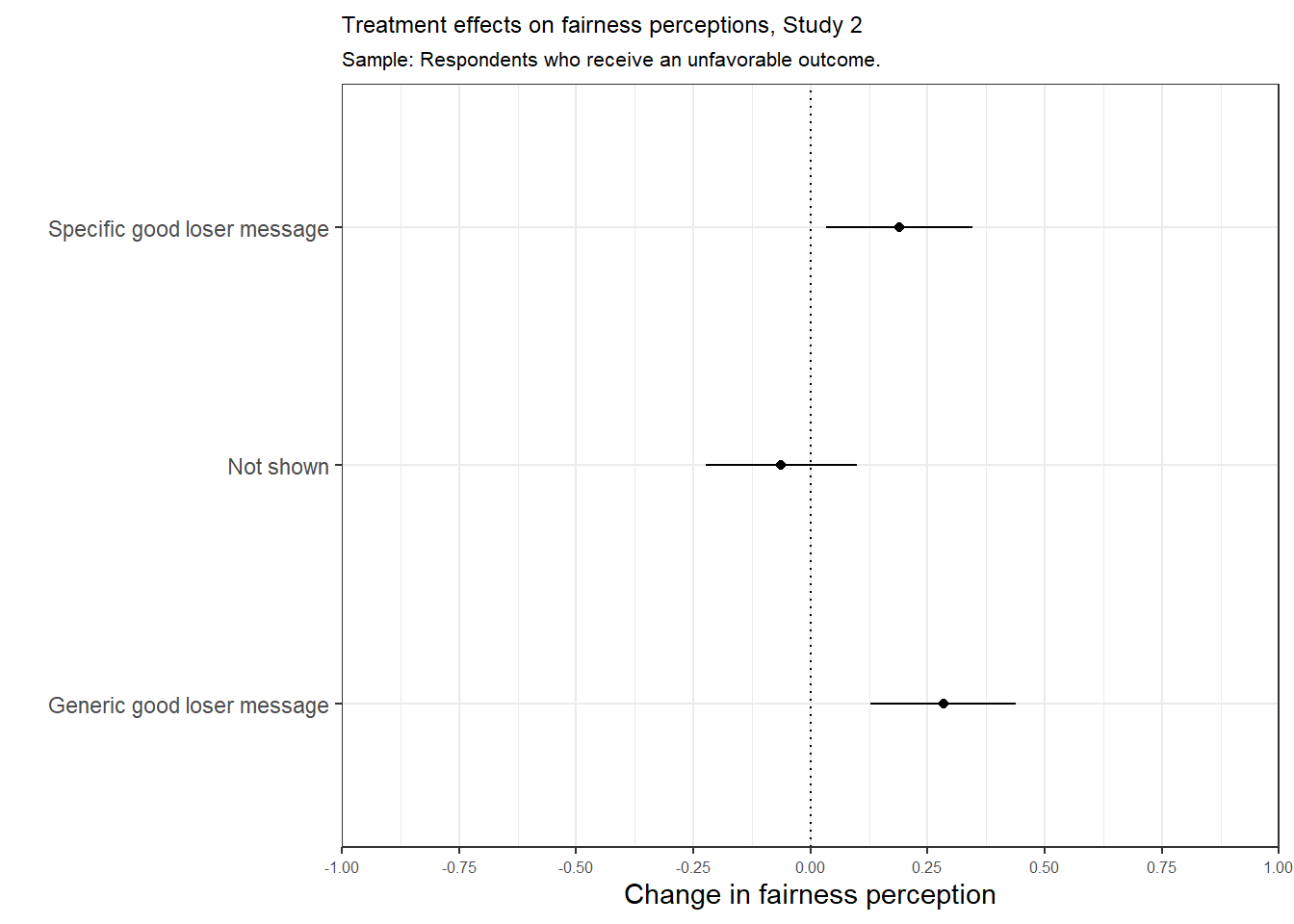 (#tab:2055_post_fairness)Treatment effects among losers on fairness perceptions of decision, Study 2