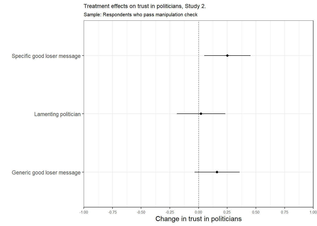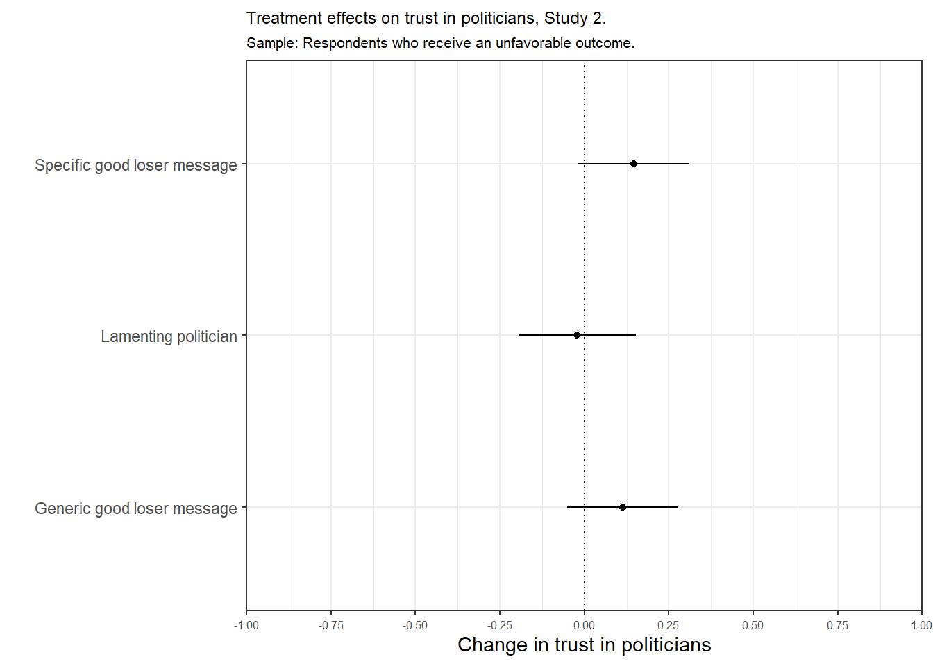 (#tab:205_post_trust)Treatment effects among losers on trust in politician, Study 2