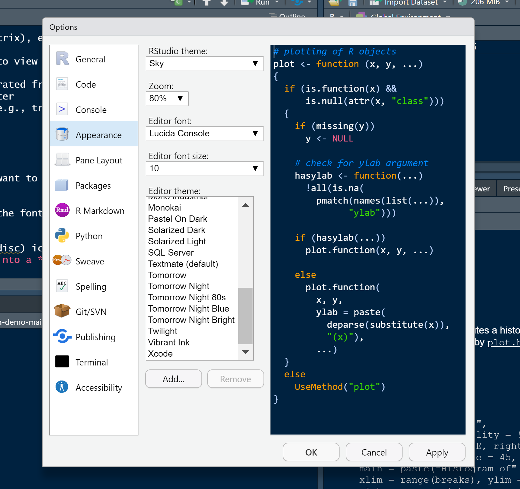 Before we begin programming in R — you might want to adjust your RStudio interface to your liking: