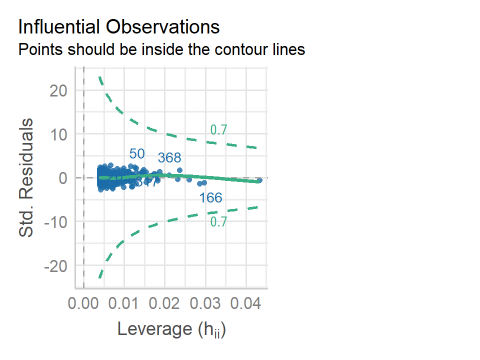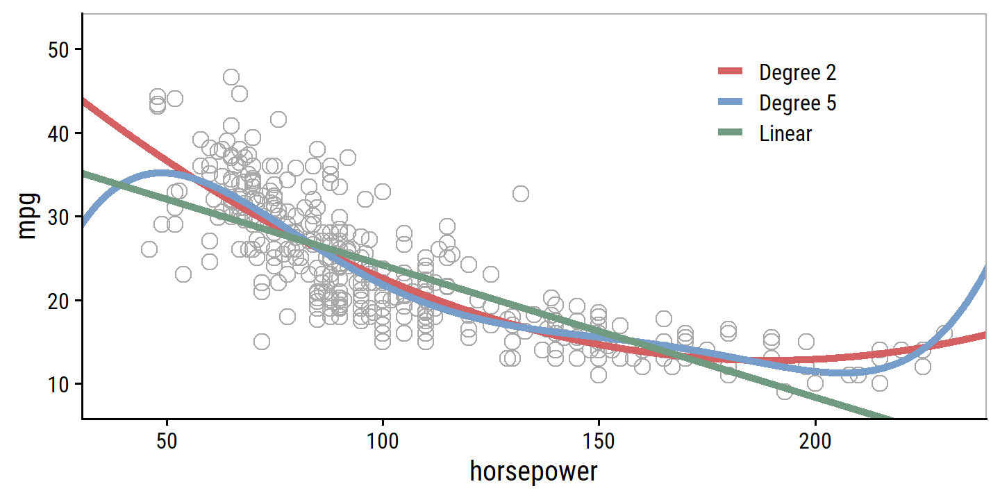 We recover the same regression coefficients: \(\beta_0\) = 7.03 and \(\beta_1\) = 0.048.