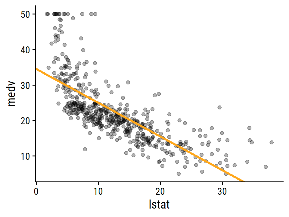 A straightforward approach of predicting a quantitative \(Y\) from a single predictor \(X\), assuming an approximately linear relationship: