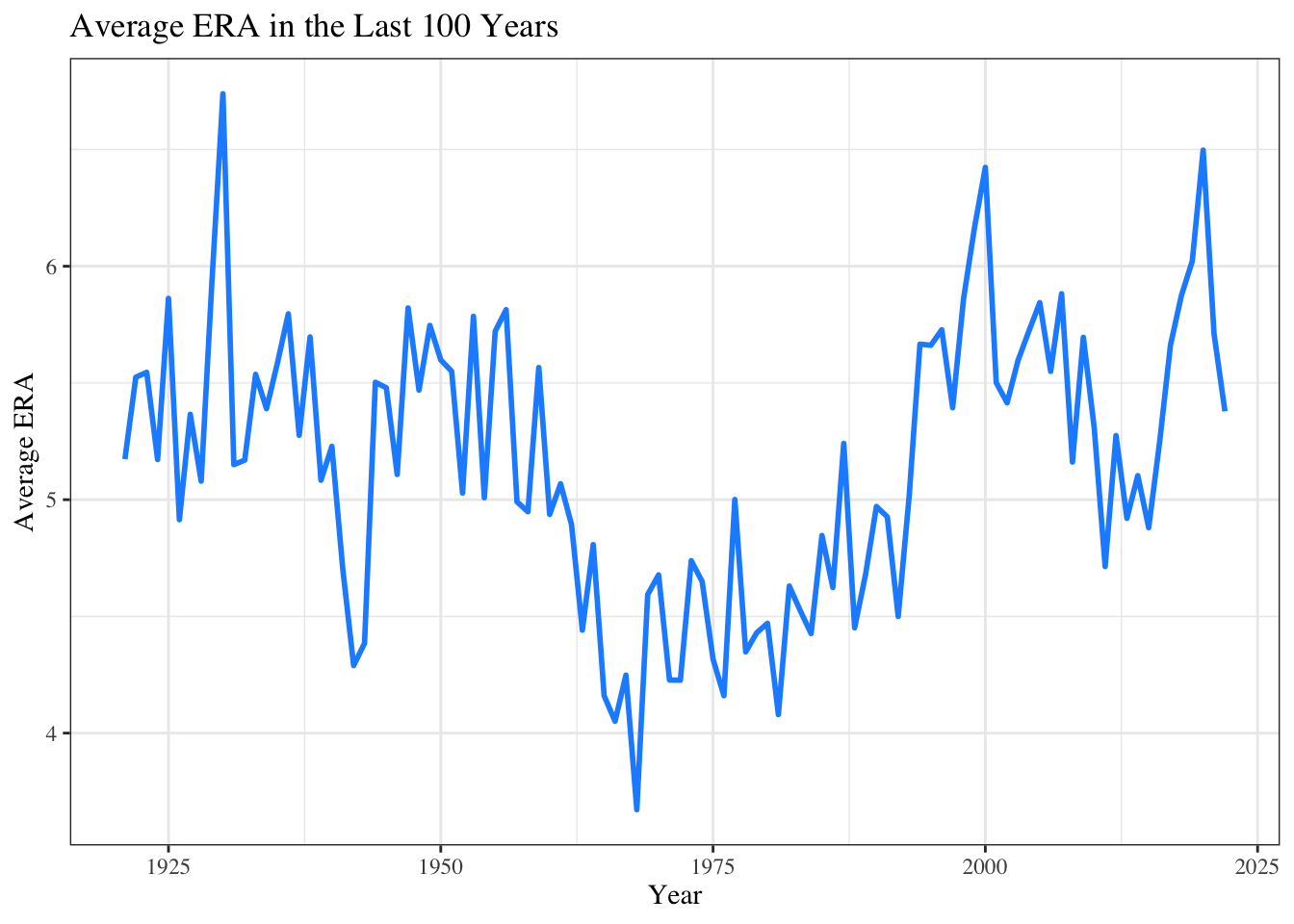 labs(title = "Average ERA in the Last 100 Years",