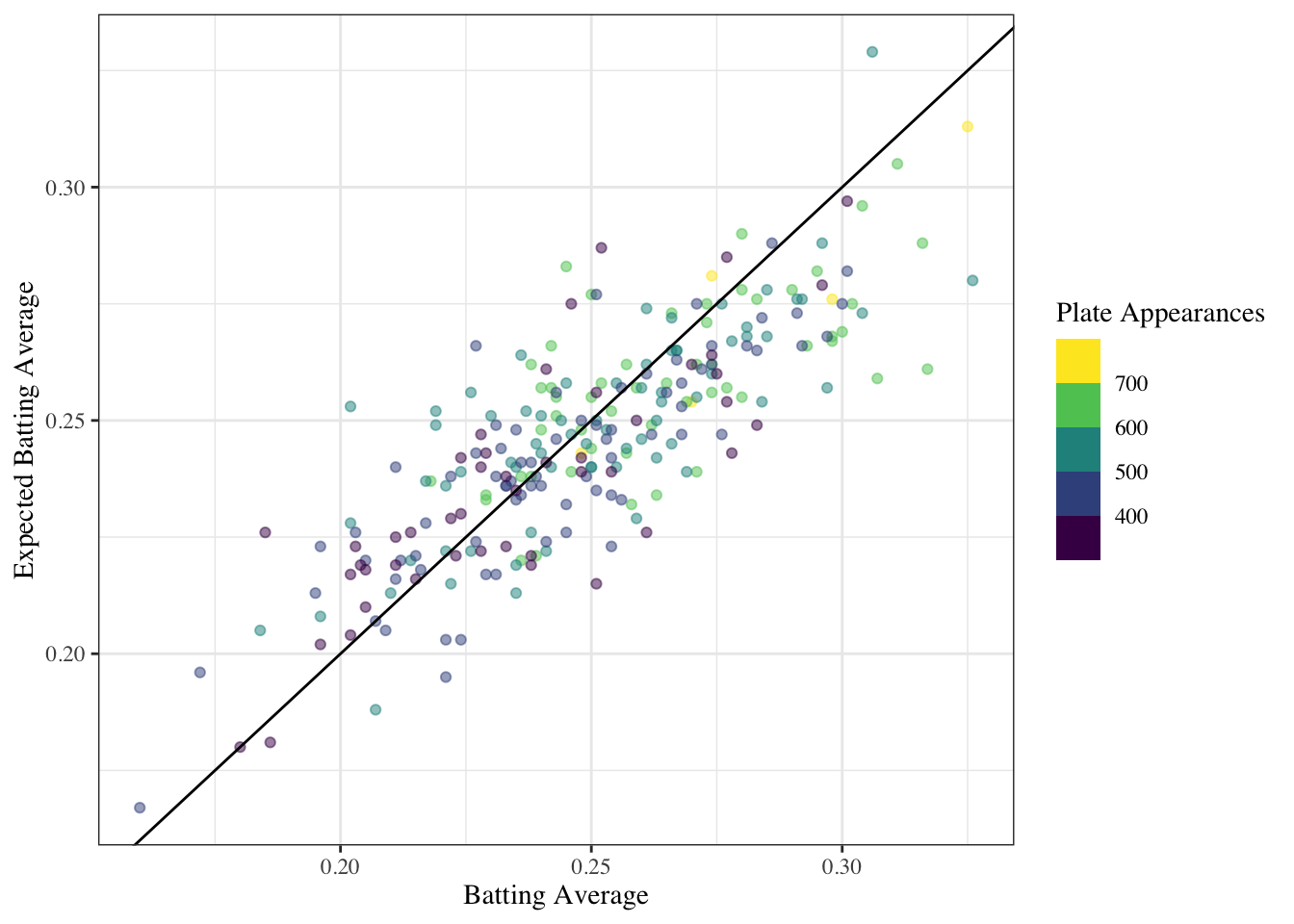 labs(x = "Batting Average", y = "Expected Batting Average",