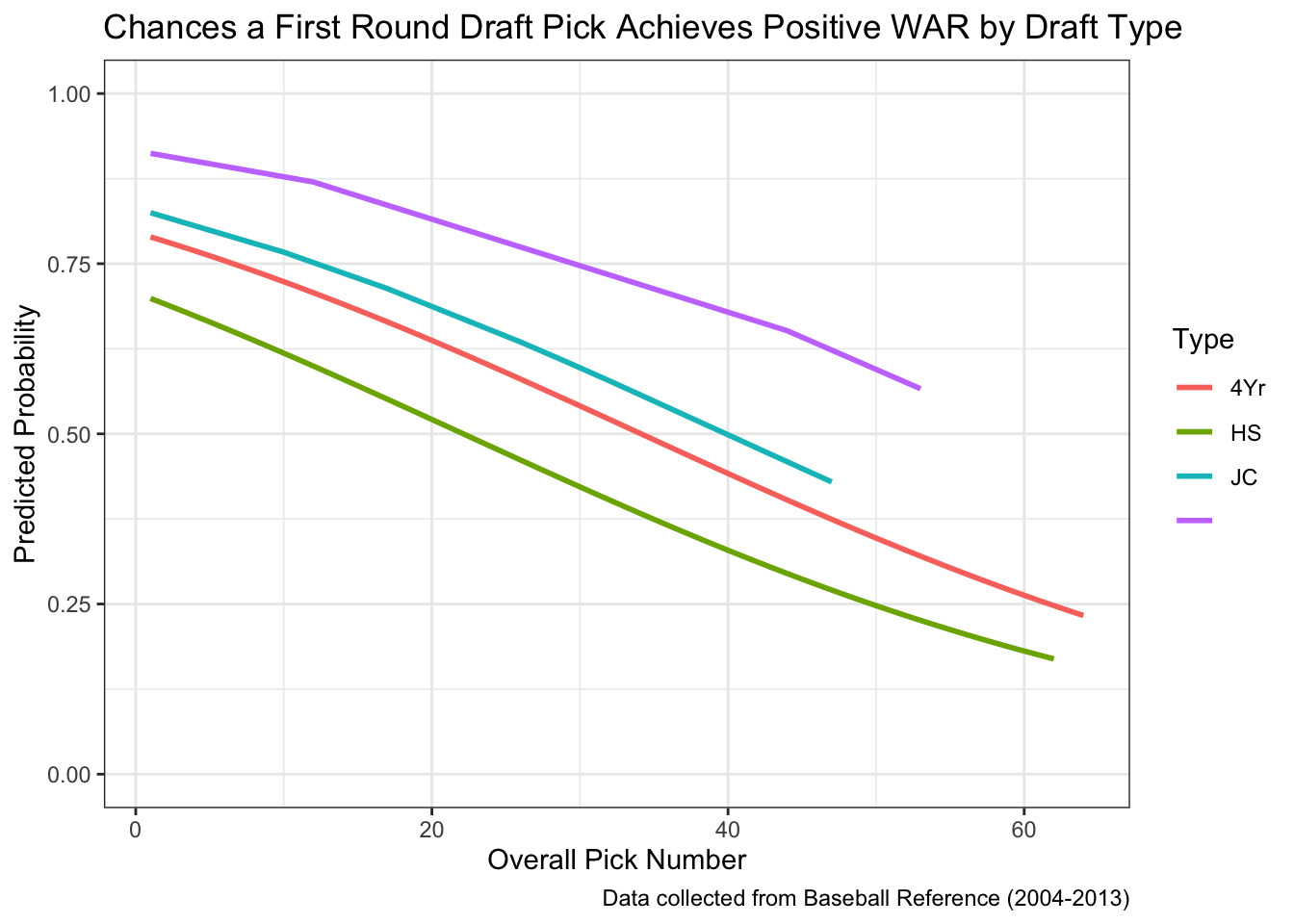 labs(title = "Chances a First Round Draft Pick Achieves Positive WAR by Draft Type",