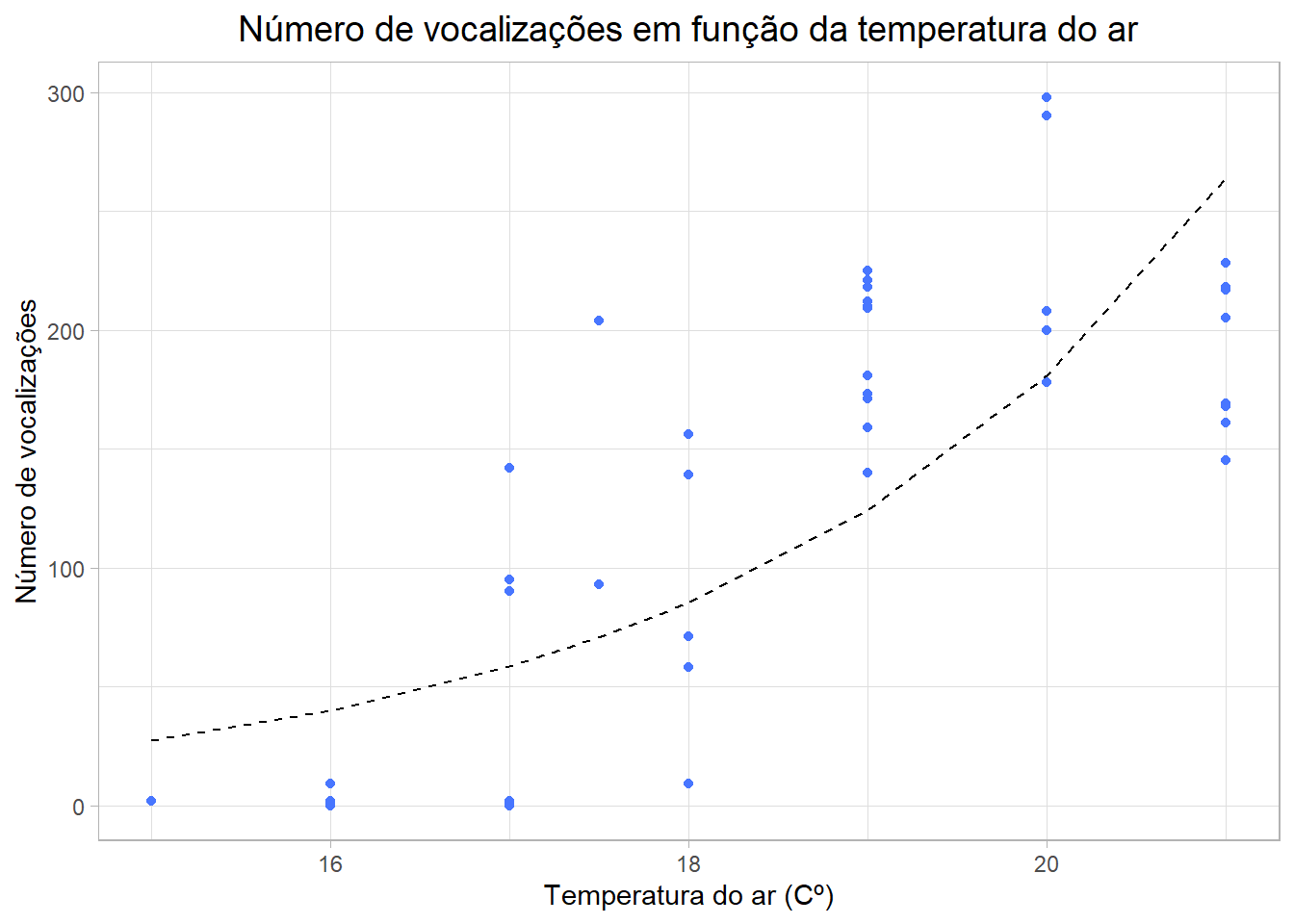labs(title = "Número de vocalizações em função da temperatura do ar")+