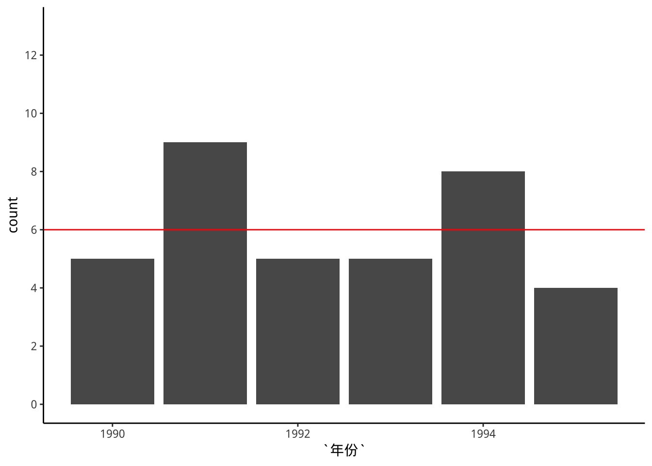 geom_hline(yintercept=6,color="red") -> p1