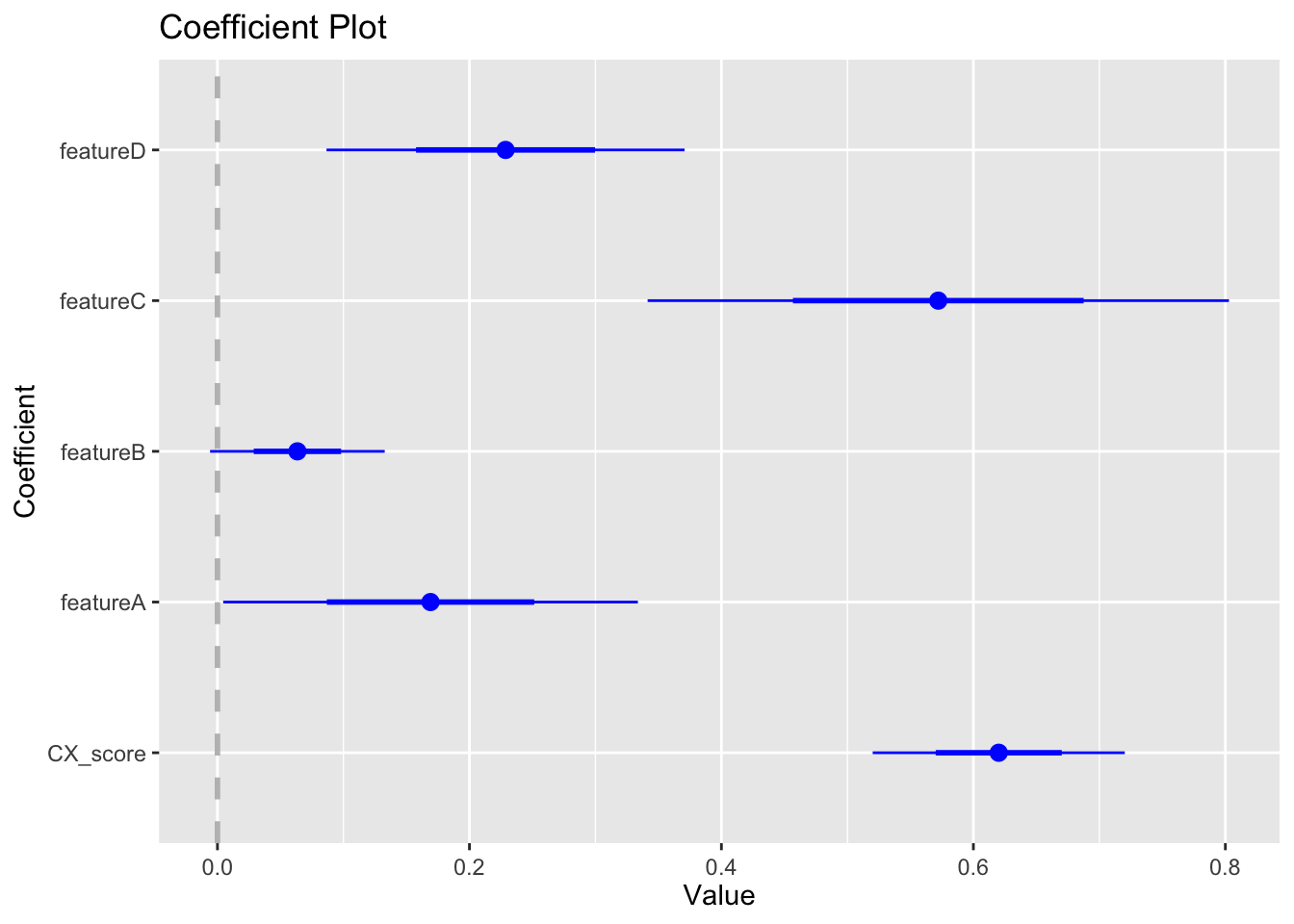 All predictors are statistically significant at the 95% confidence interval, except for “featureB”