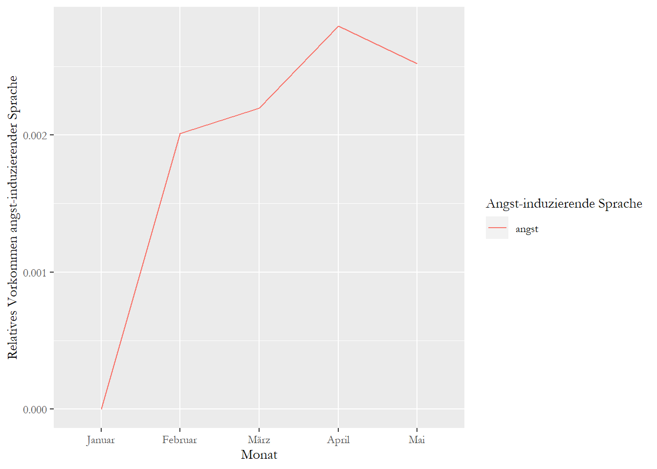 Dann nutzen wir die gleichen Logik wie zuvor, um uns das Vorkommen angst-induzierender Sprache über Zeit ausgeben zu lassen: