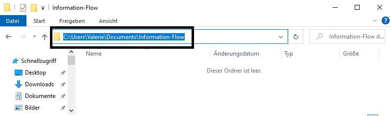 Create a folder that you want to use as your working directory for this tutorial (or use an existing one, that also works). For this tutorial, I created a folder called “Information-Flow”.