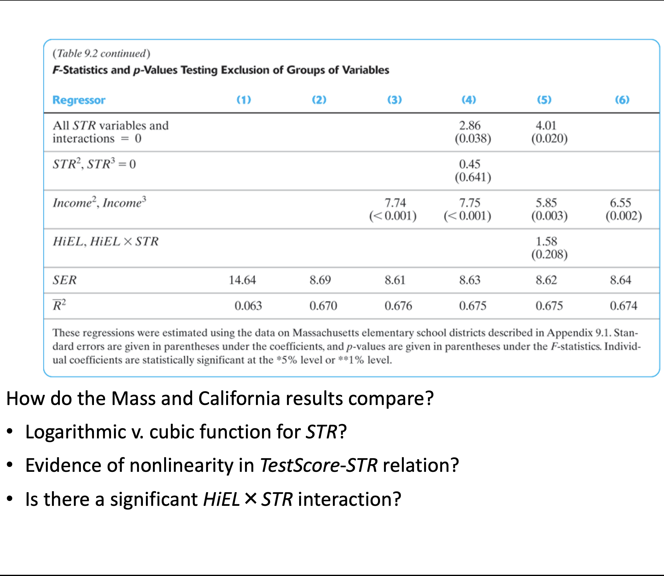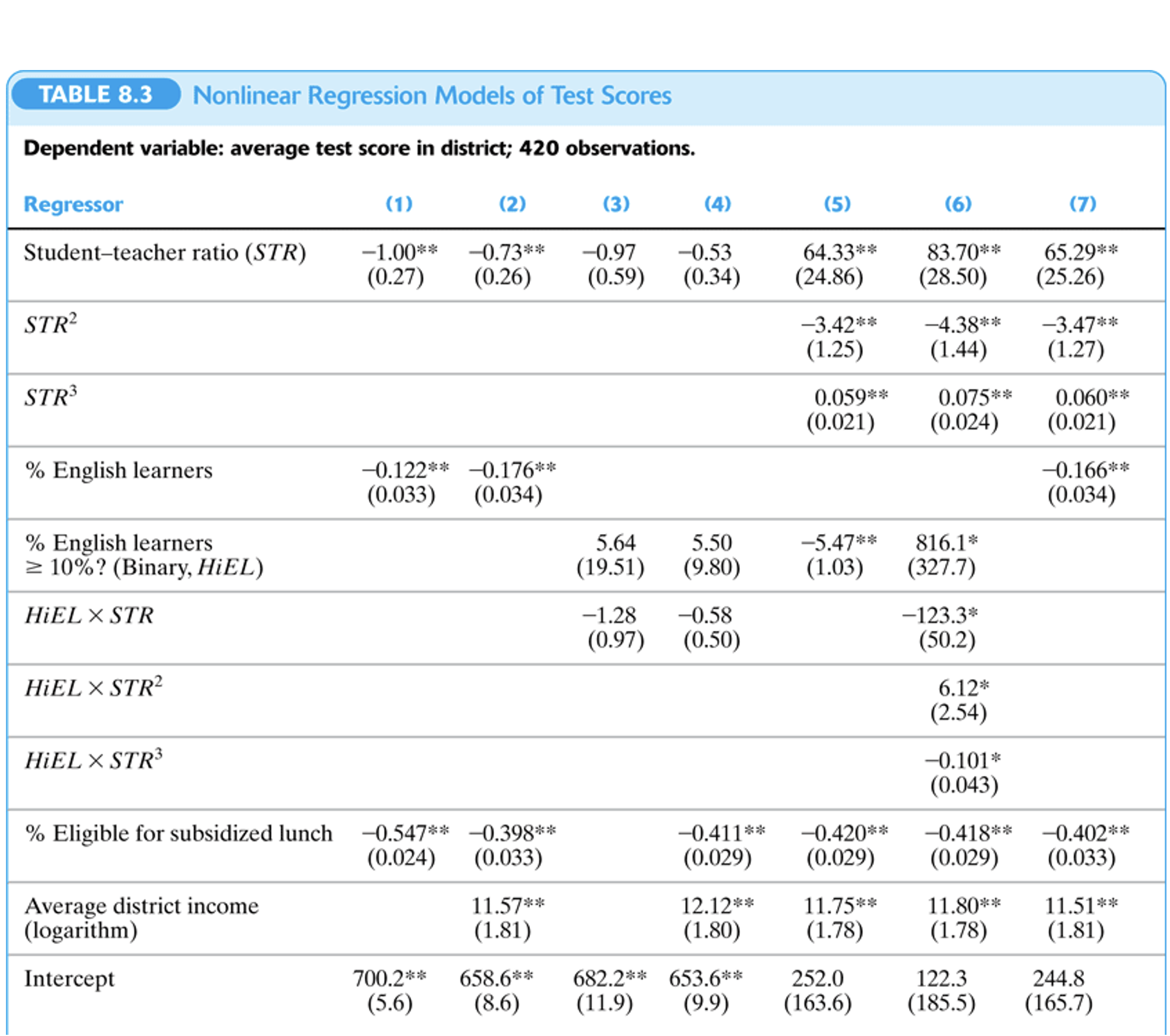 Por ejemplo, supongamos que especificamos el siguiente modelo: \[\begin{equation} Ing_i=\beta_0+\beta_1Educ_i+\beta_2Calidad_i+\beta_3Educ_i*Calidad_i \end{equation}\] donde \(Calidad_i\) es un índice que mide la calidad de la educación recibida. En este caso los retornos por un año adicional de educación serán: \[\begin{equation*} \frac{\partial E(Ing_i)}{\partial Educ_i}=\beta_1+\beta_3Calidad_i \end{equation*}\] Lo que nos indica el resultado anterior es que dichos retornos a la educación pueden depender del nivel de calidad.