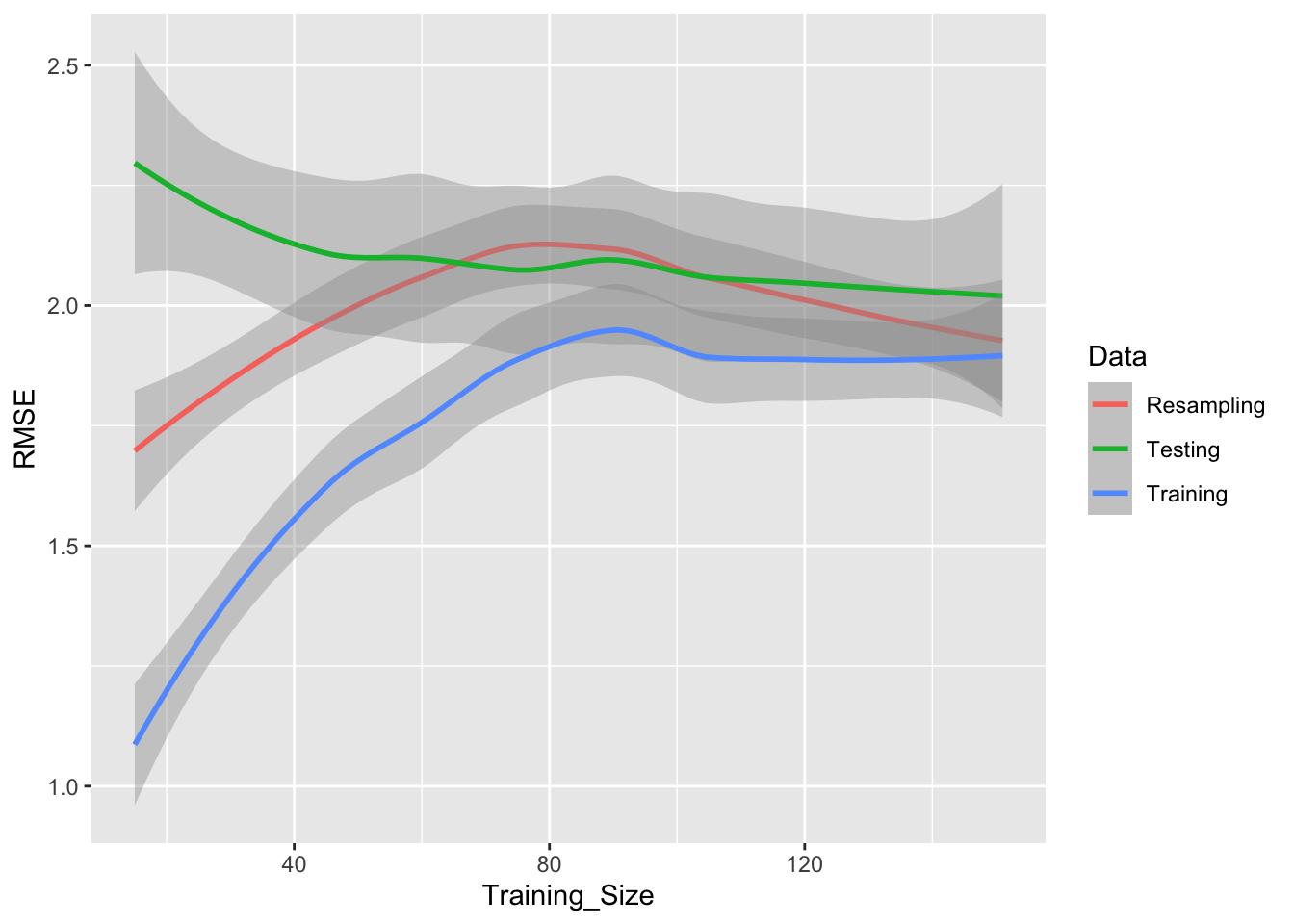 ggplot(lda_data, aes(x = Training_Size, y = RMSE, color = Data)) +