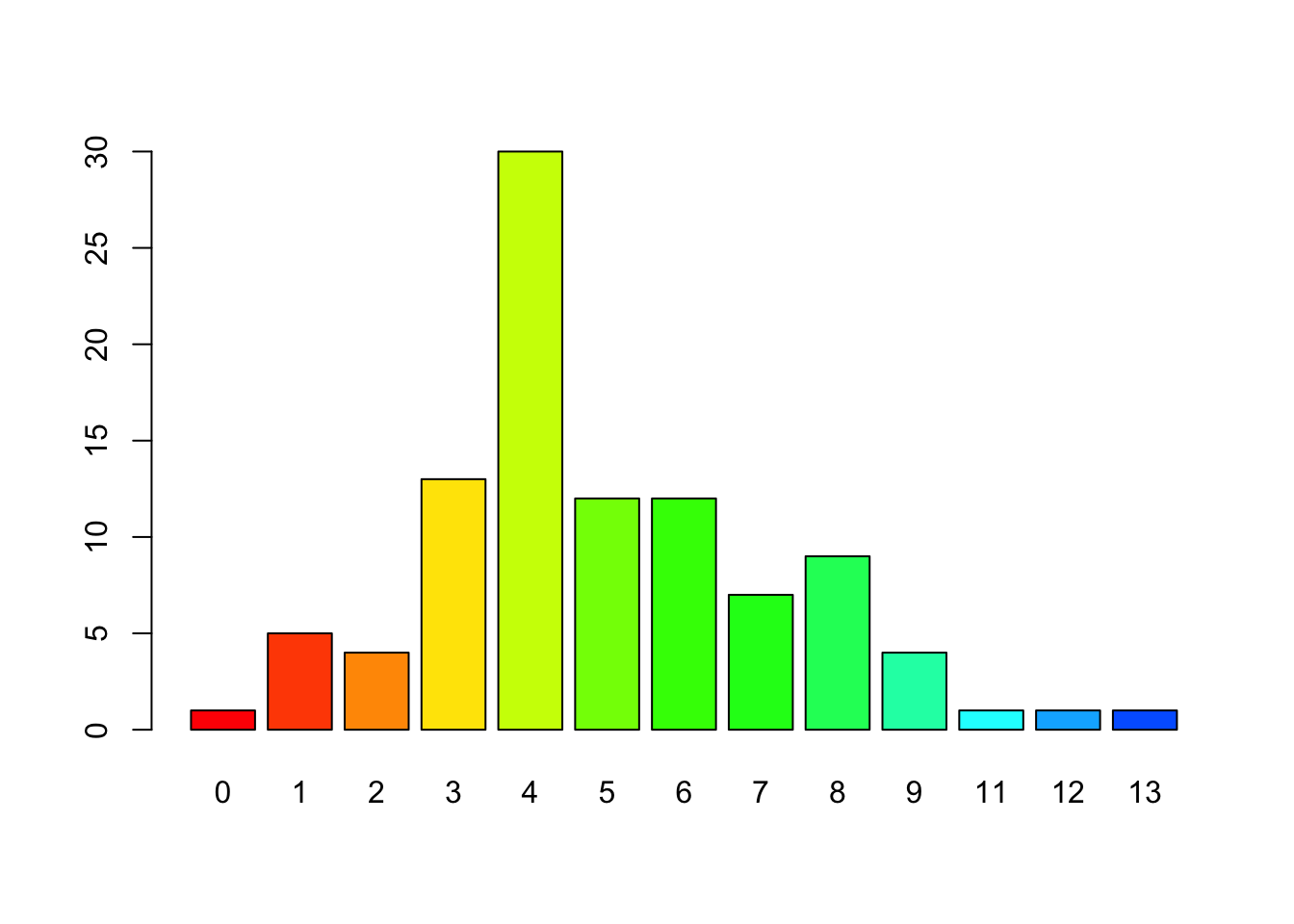Se ordena los \(x_i\) datos en una columna de forma ascendente y se cuenta cuántas veces aparece cada valor, ésta es su frecuencia absoluta \(n_i\) que se coloca en una columna contigua. Note que \(\sum_{i=1}^{k}n_i=n\).