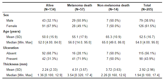 Here’s an example of a summary statistics table generated by table1.