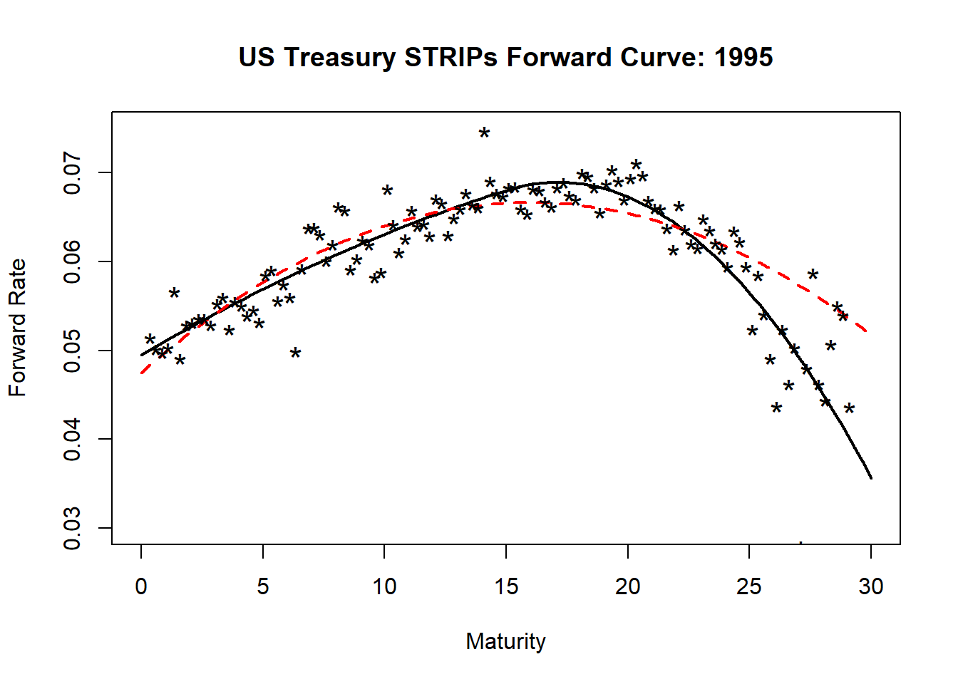 ylab = "Forward Rate", main = "US Treasury STRIPs Forward Curve: 1995")