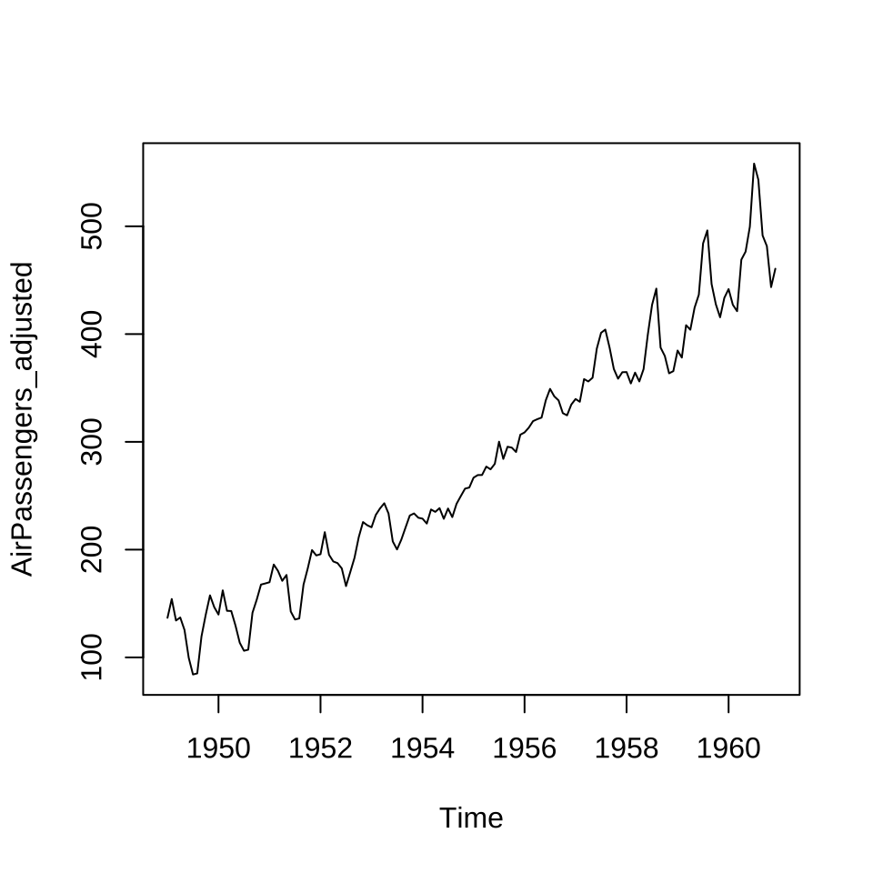 HoltWinters(x = AirPassengers, beta = FALSE, gamma = FALSE)