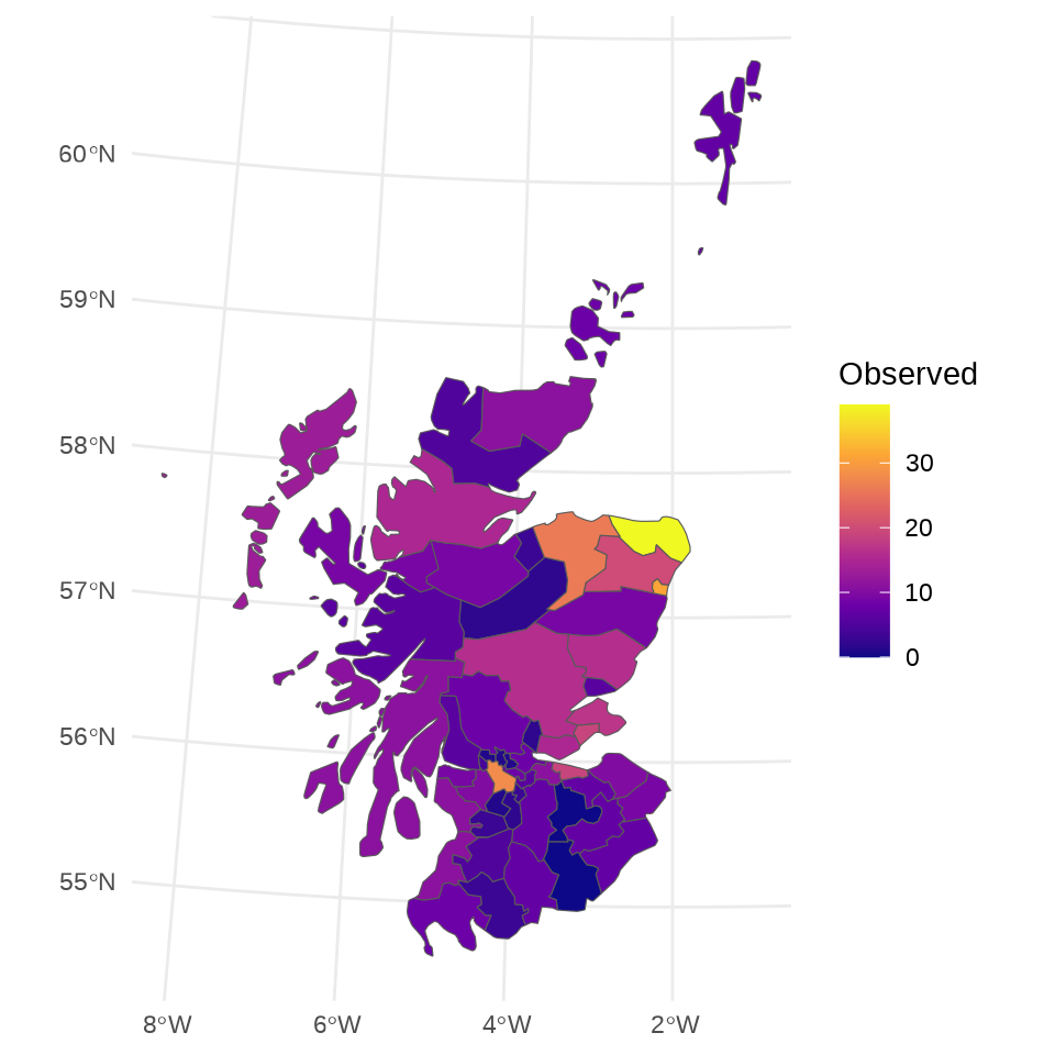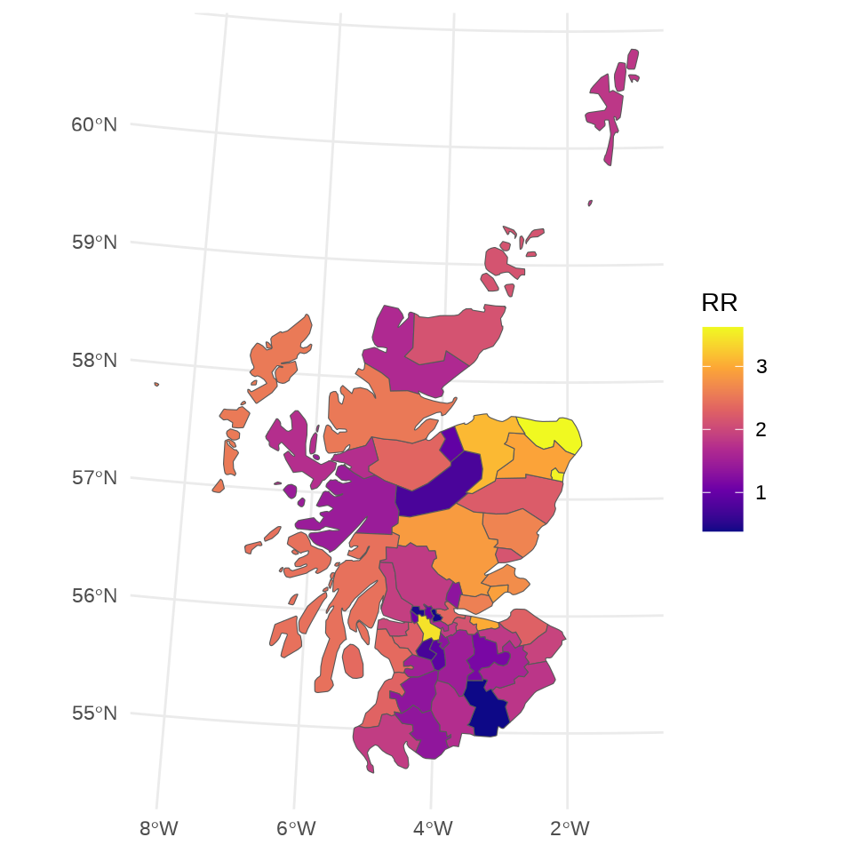 Warning: Found 23 observations with a pareto_k > 0.7 in model 'scot_fit_bym2'.
