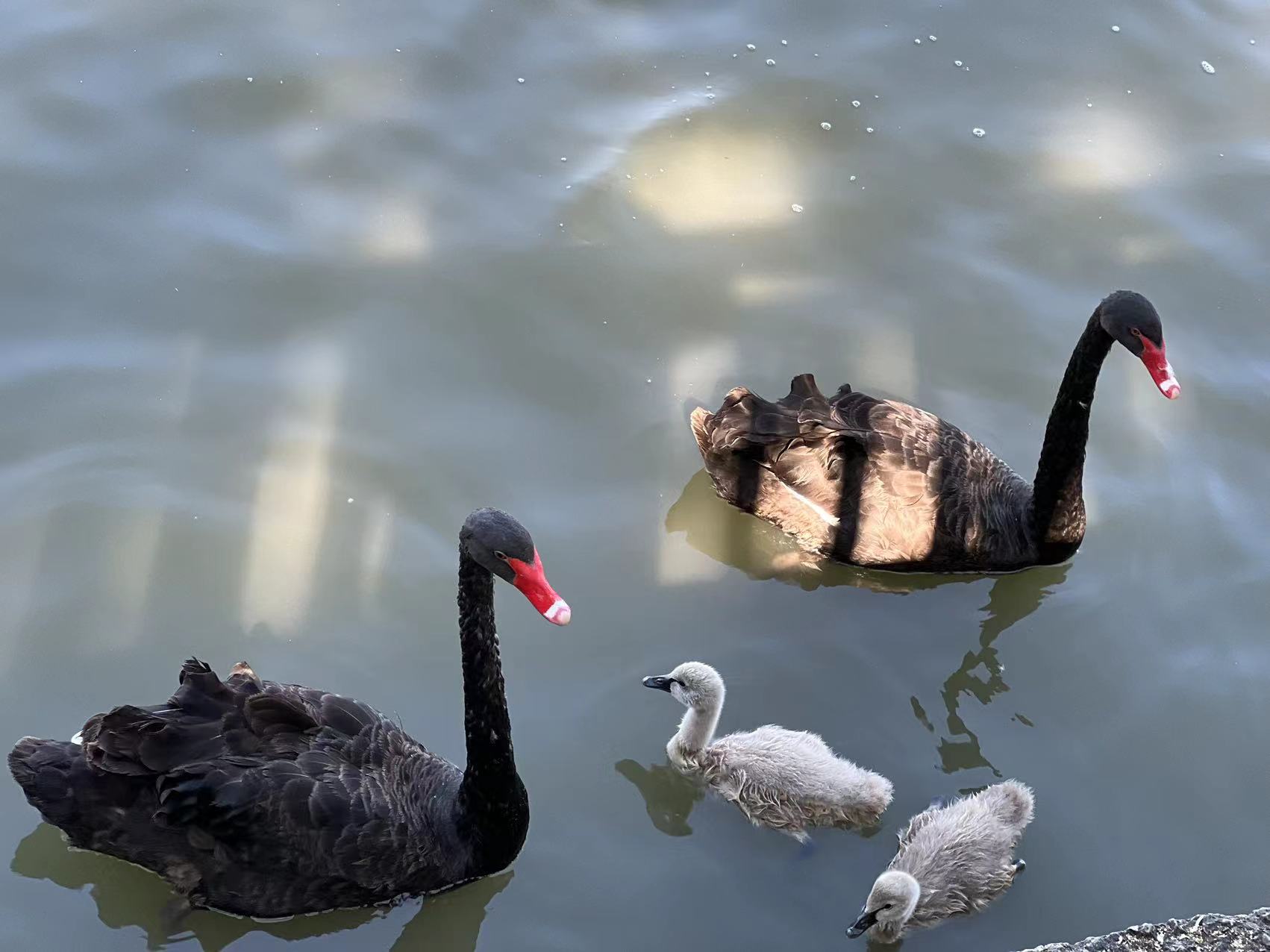 水上的黑天鹅宝宝是白不呲啦灰不溜丢的