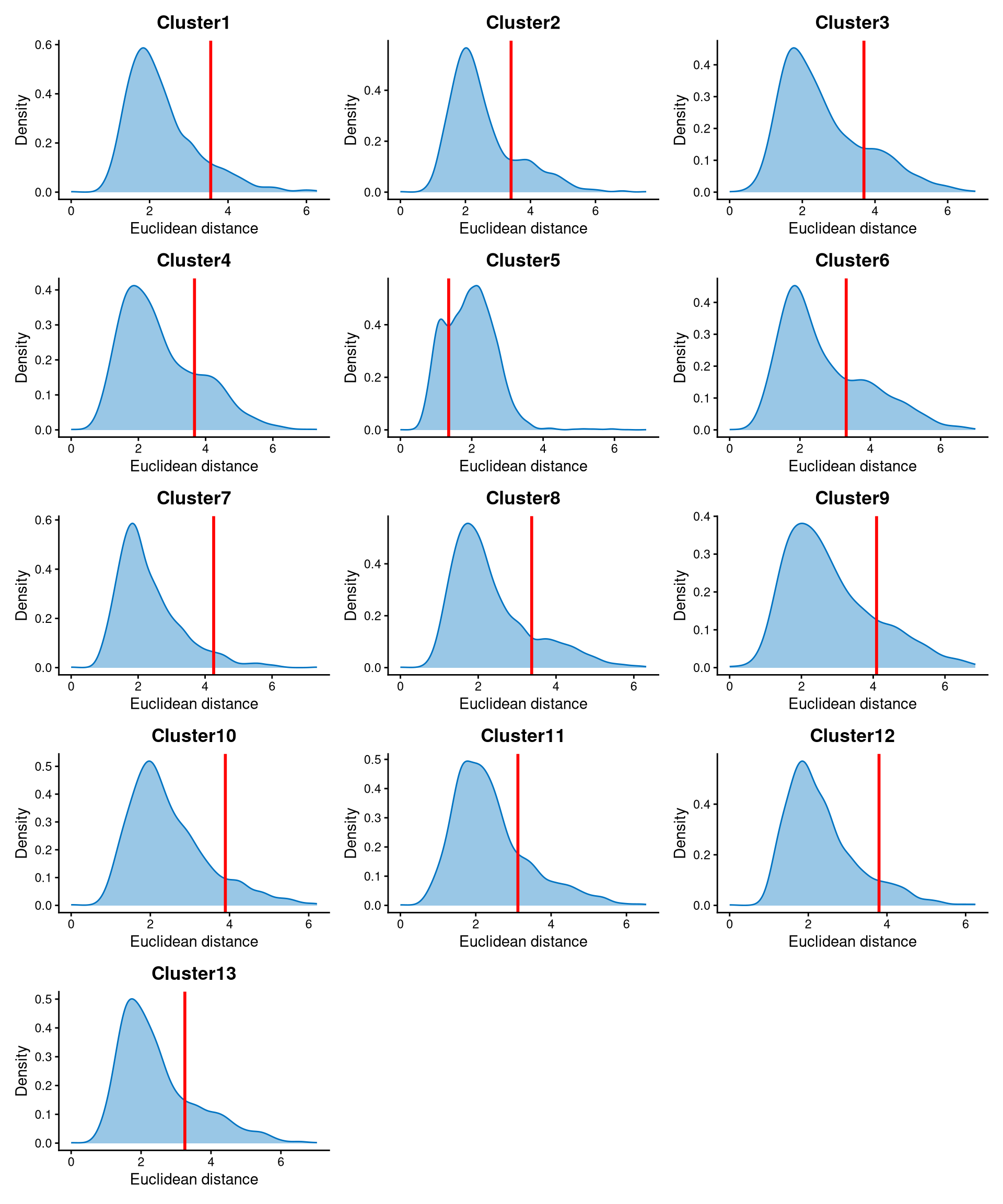 EuclideanDistPlot(emcmo.cl.dist, eu_cut_q = c(0.9, 0.81, 0.81, 0.79, 0.23, 0.72, 0.95, 0.84, 0.83, 0.9, 0.8, 0.91, 0.79))