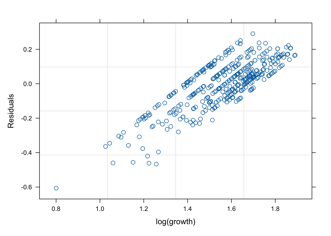 plot (mod2s, resid (.) ~ log (growth))
