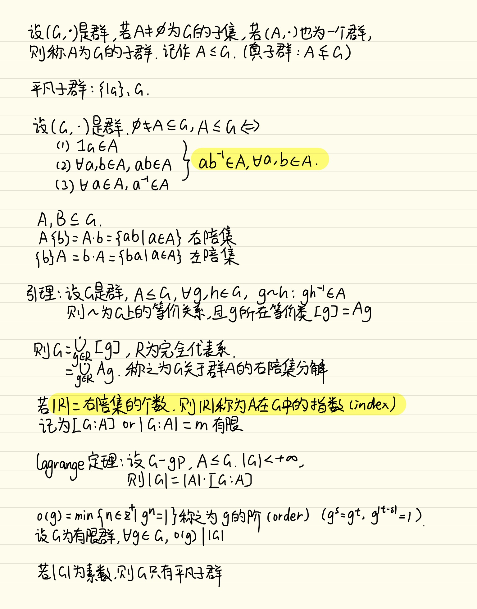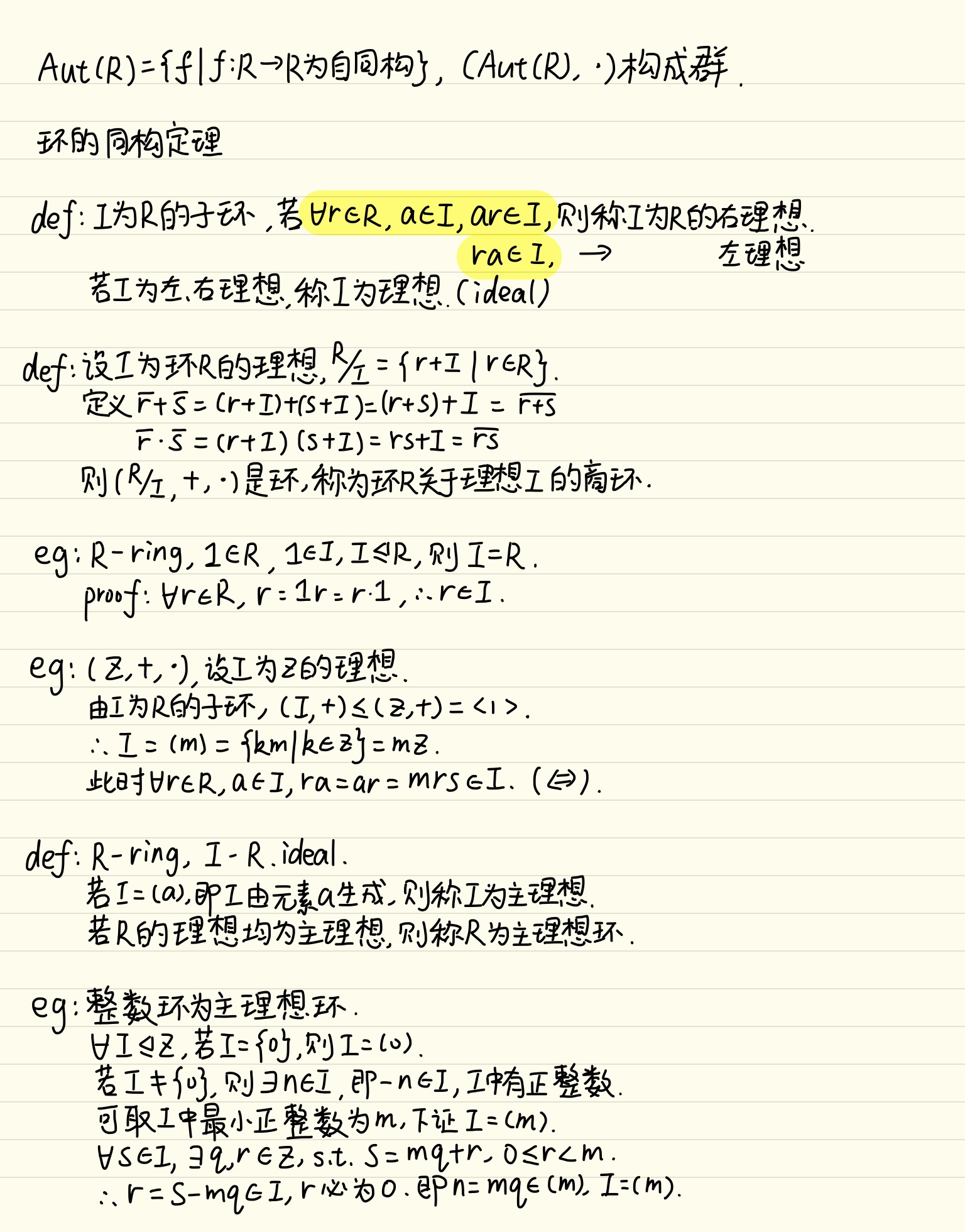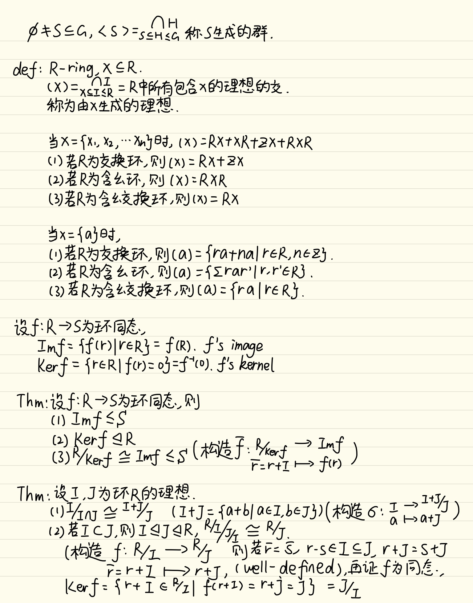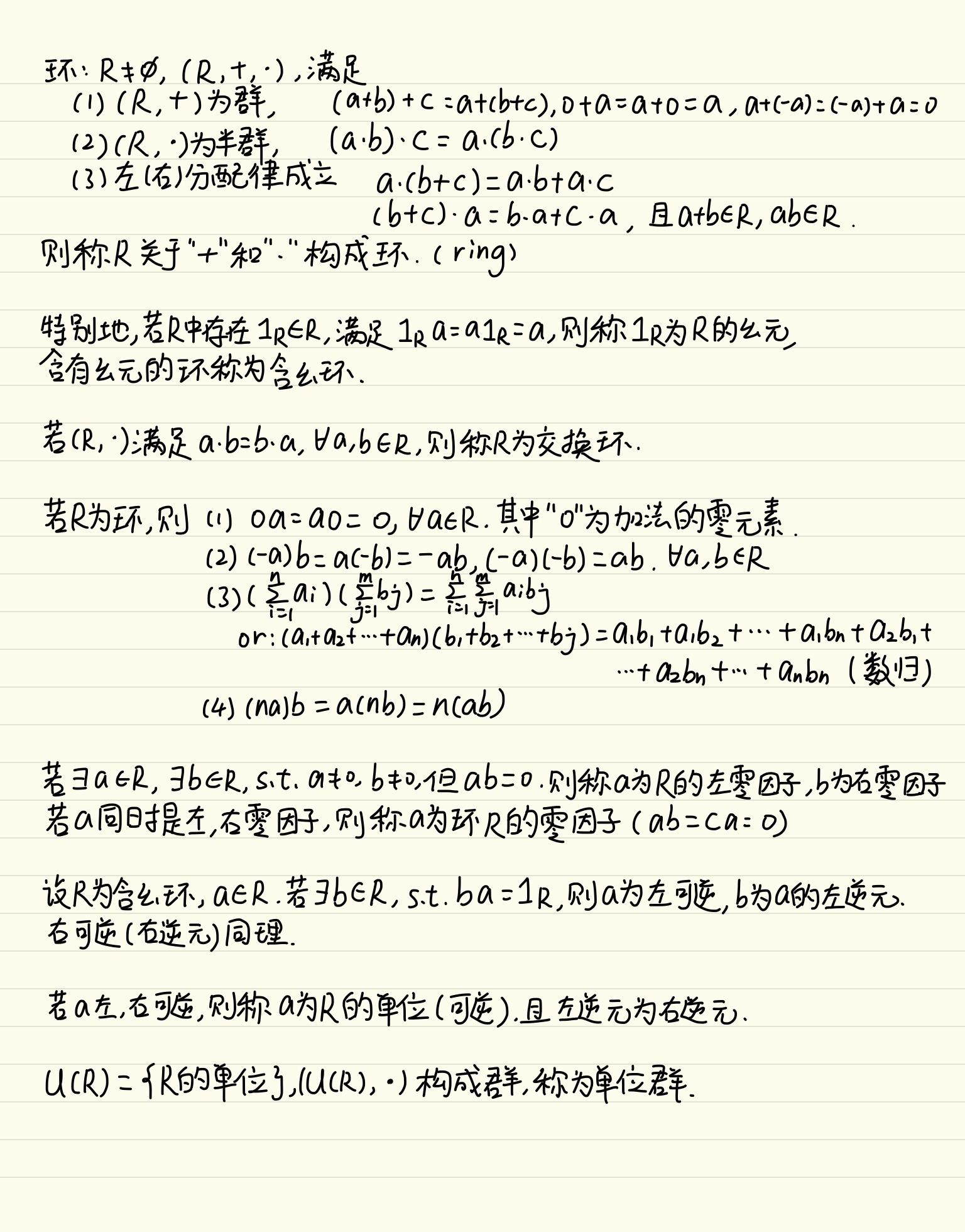 抽象代数笔记主要内容为群、环等代数结构的性质