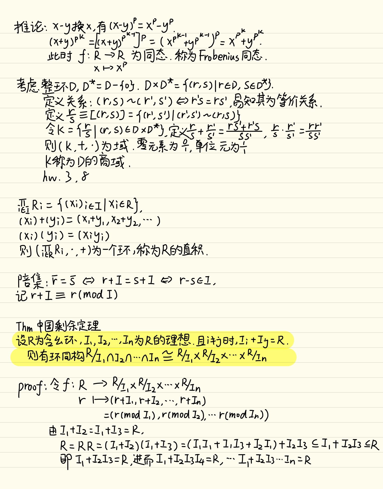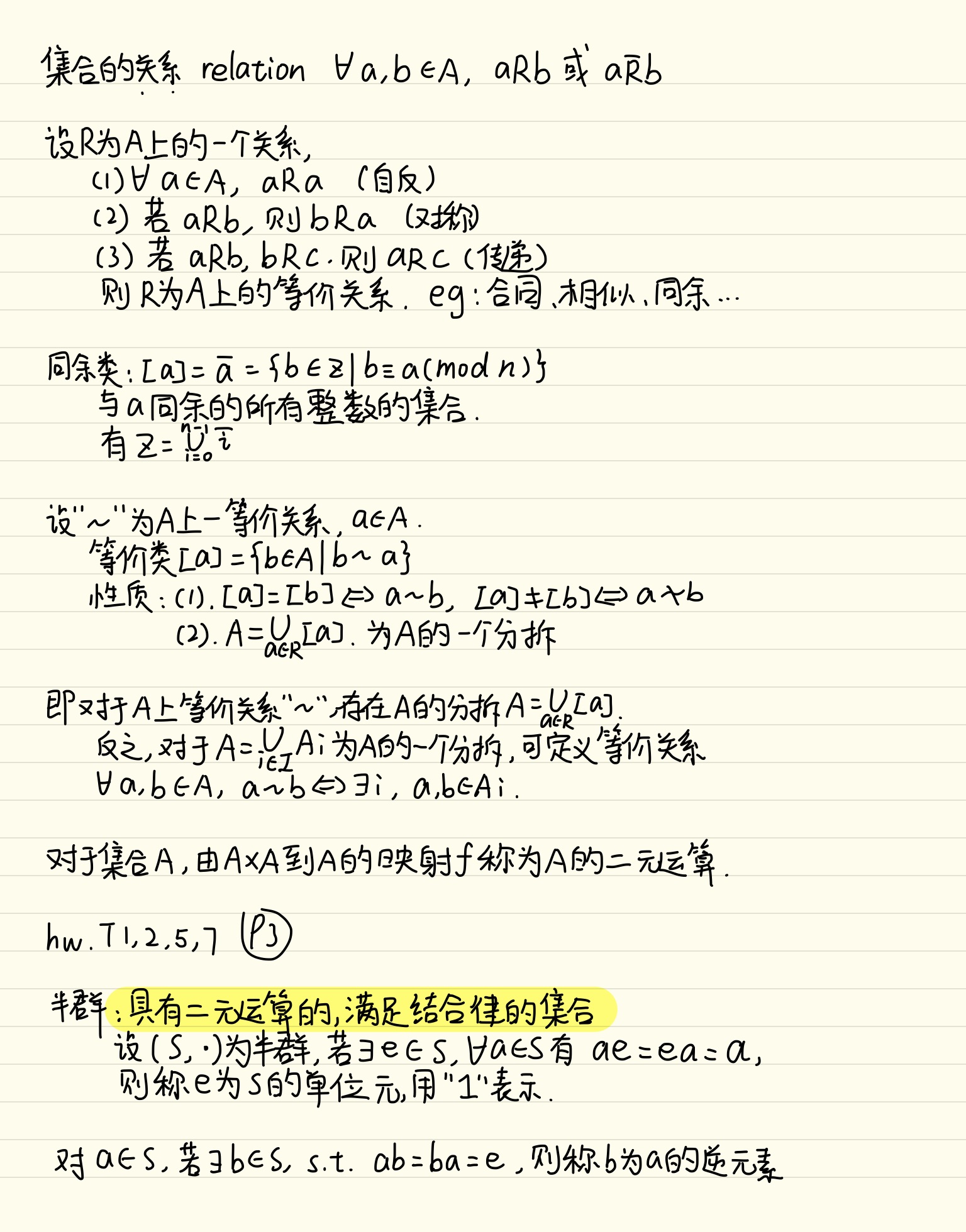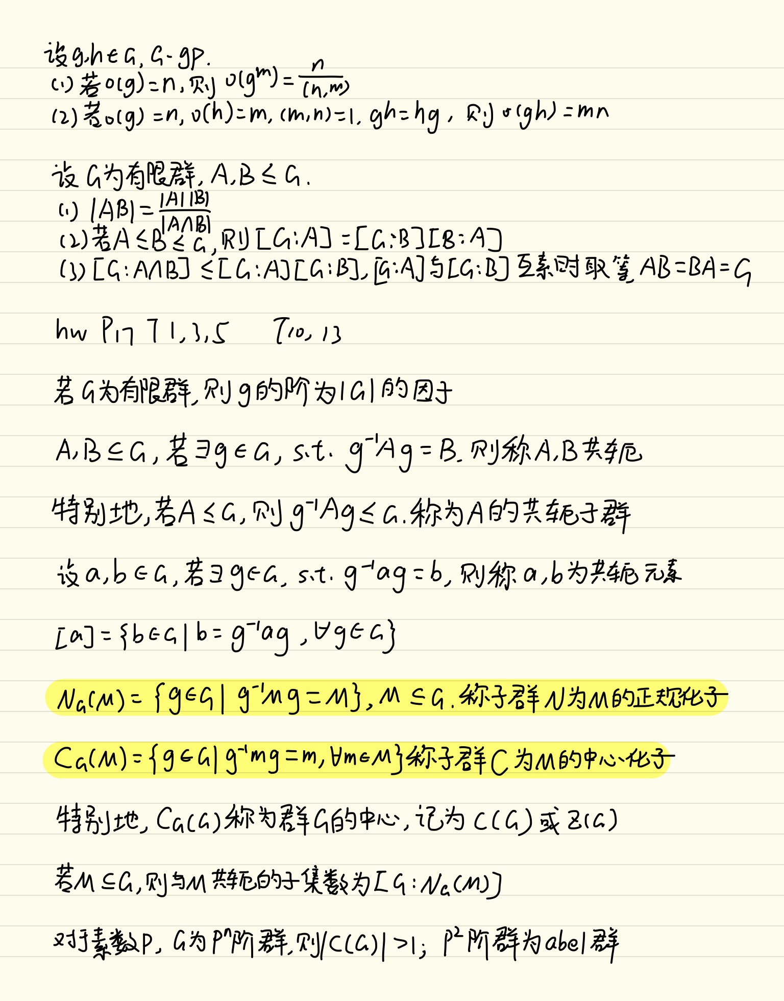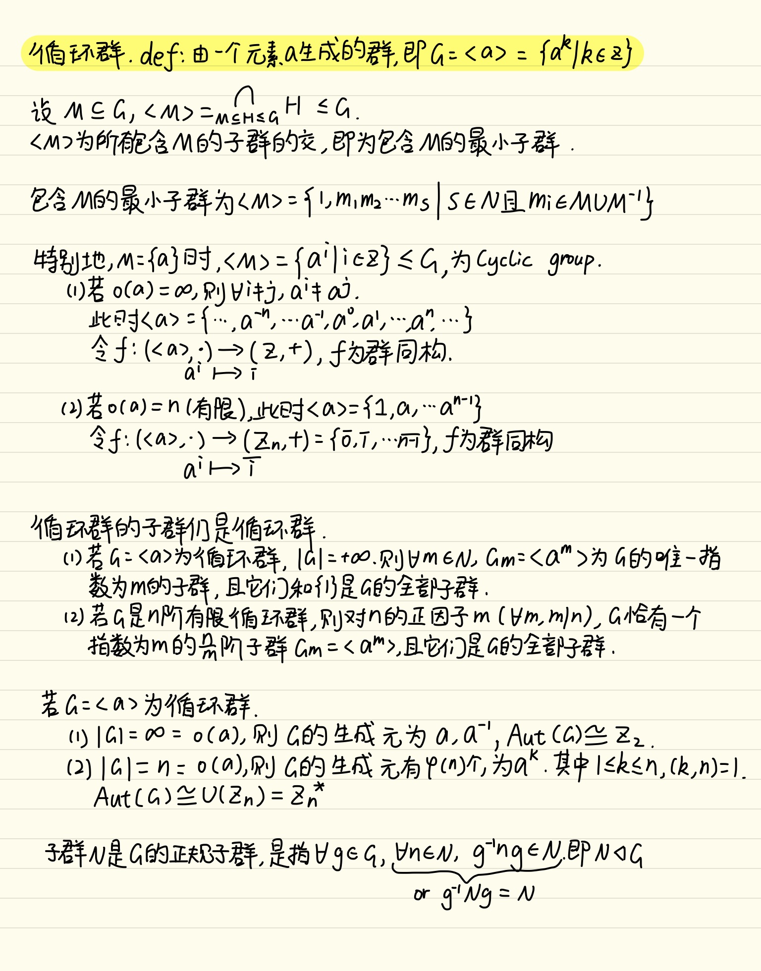 抽象代数笔记主要内容为群、环等代数结构的性质