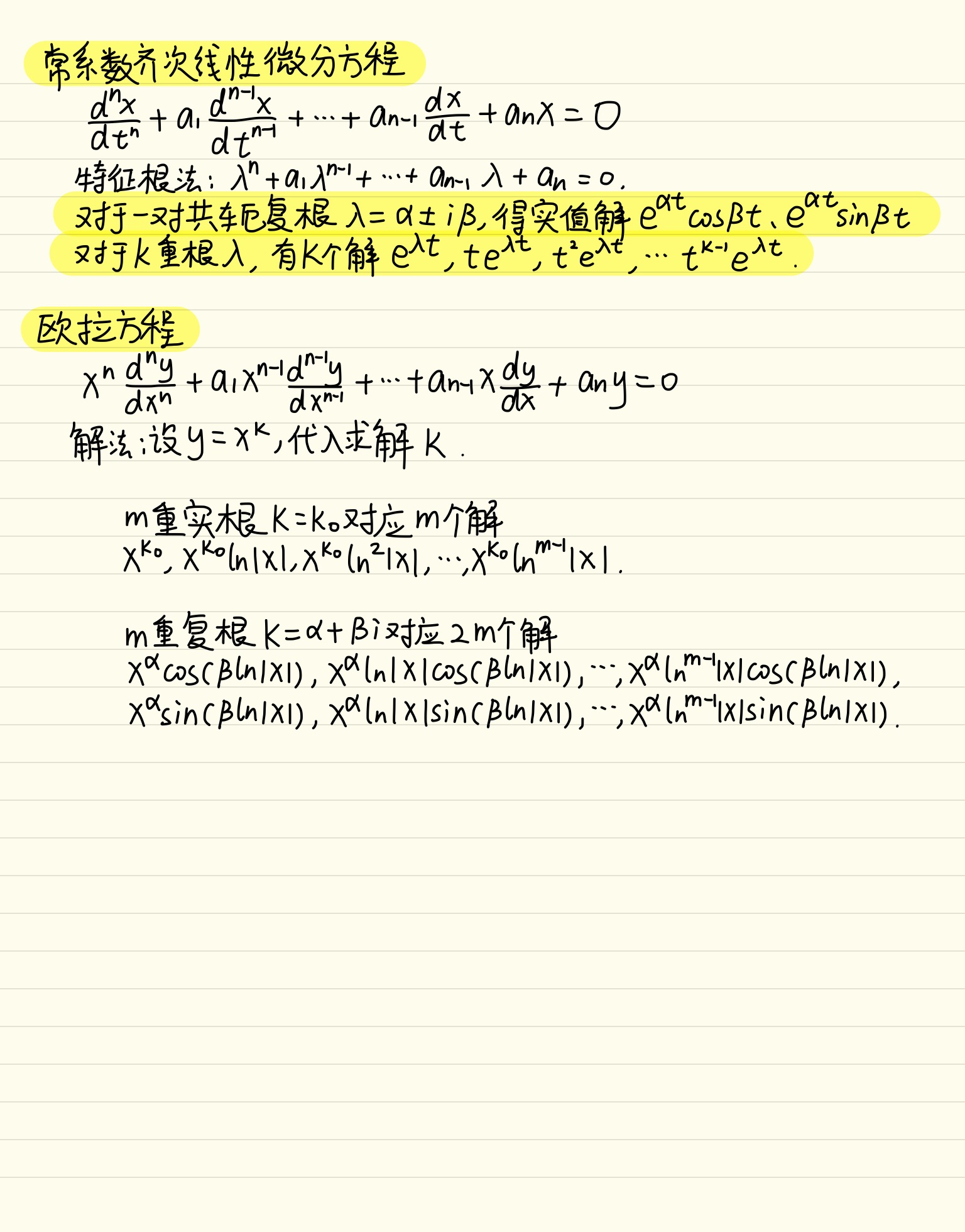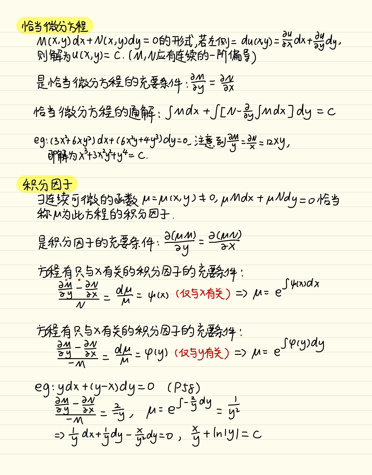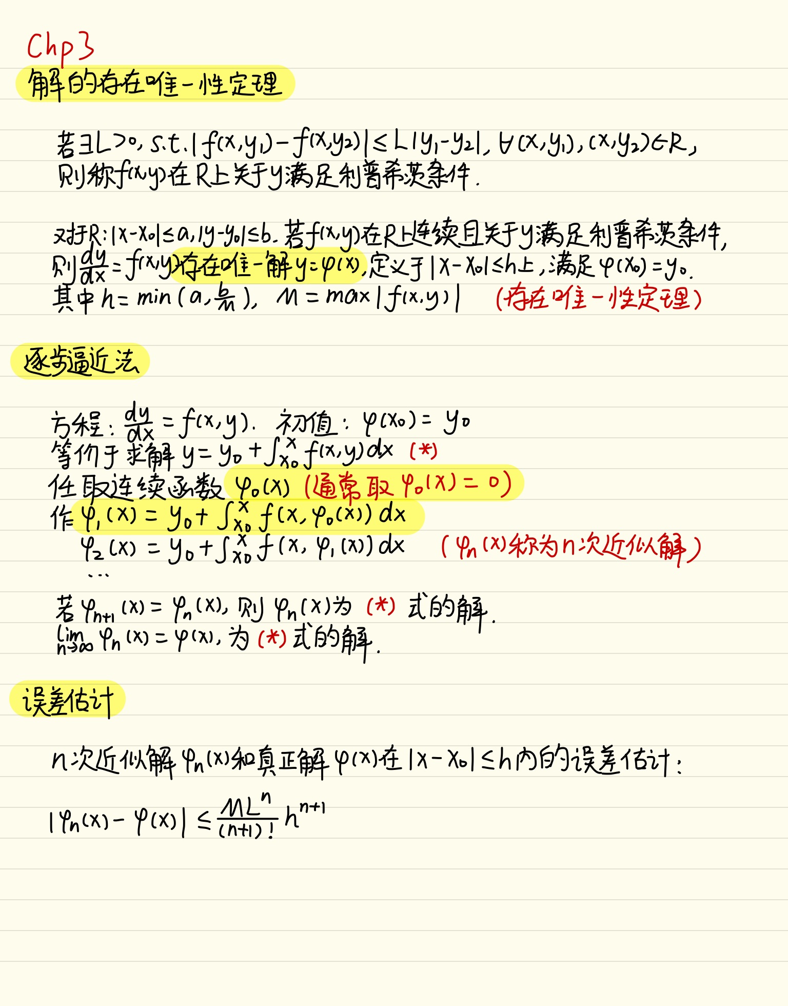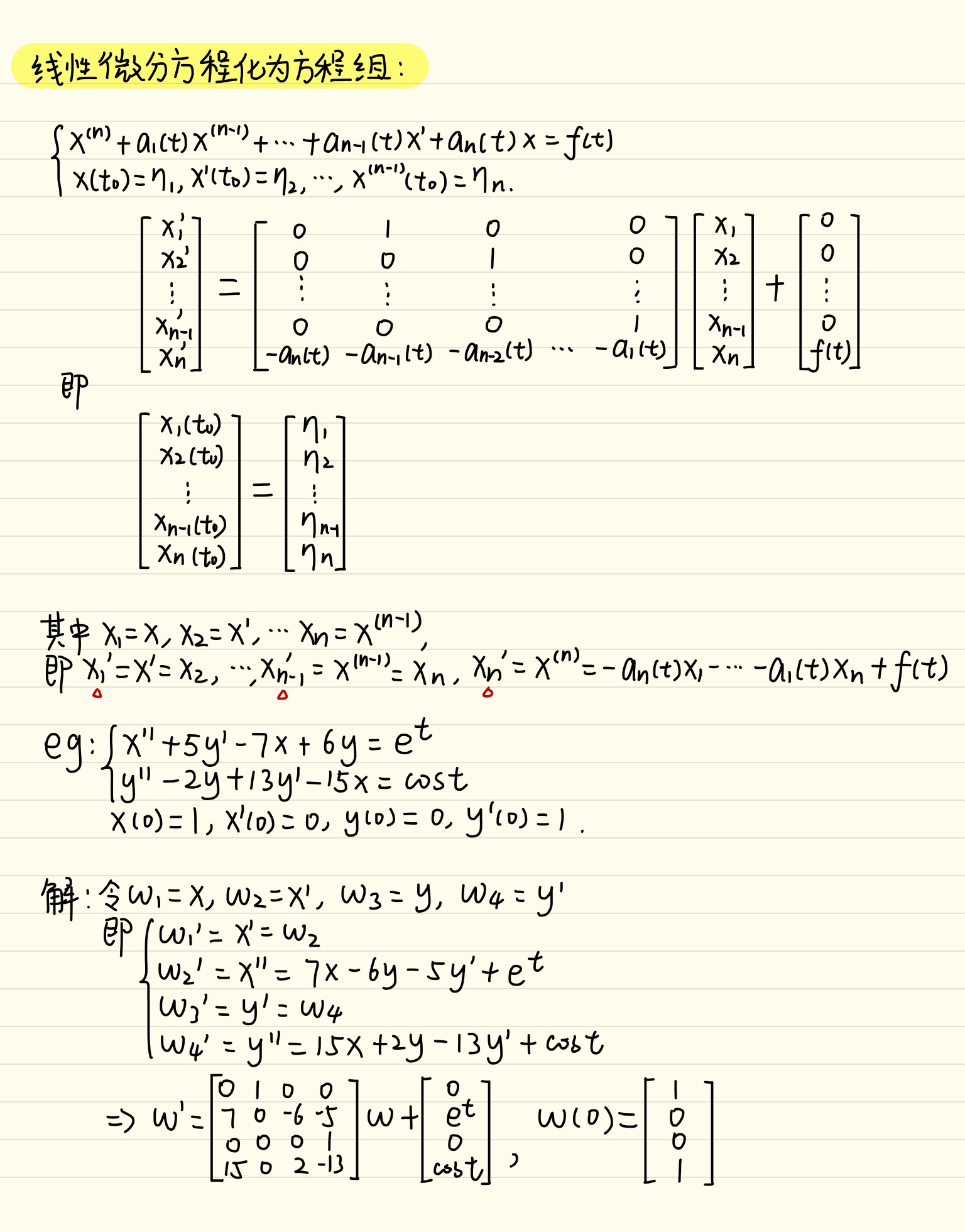 常微分方程笔记主要内容为一阶微分方程解的存在性与解法、高阶微分方程与线性微分方程组等内容。