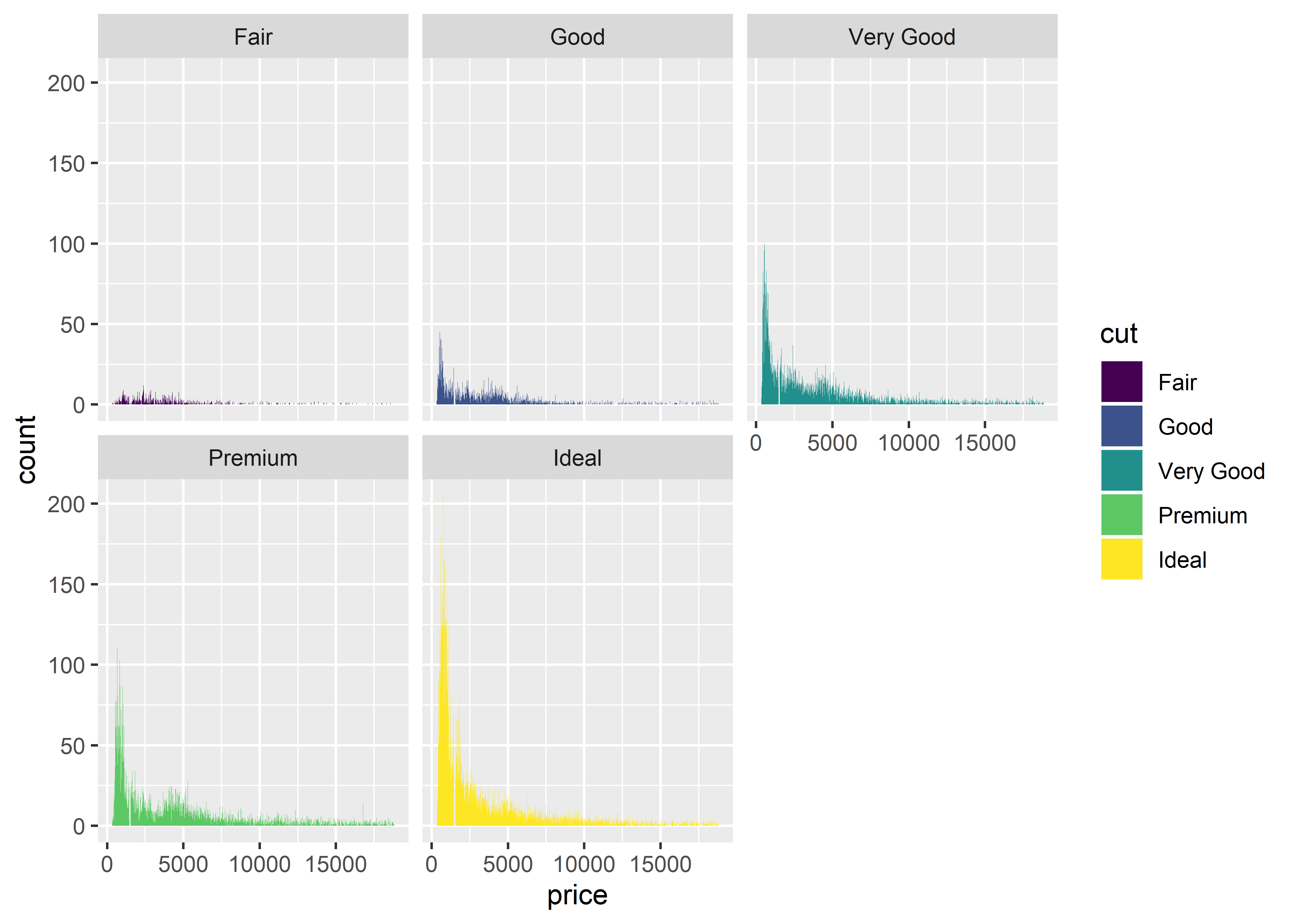 ggplot(aes(x = price, group = cut, fill = cut)) +