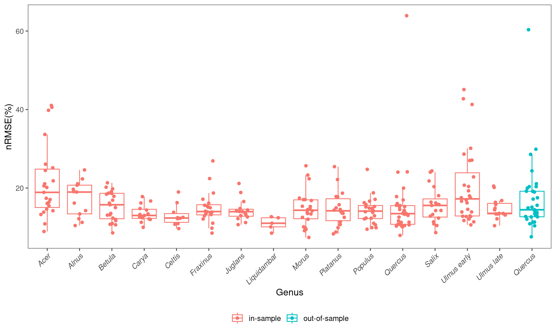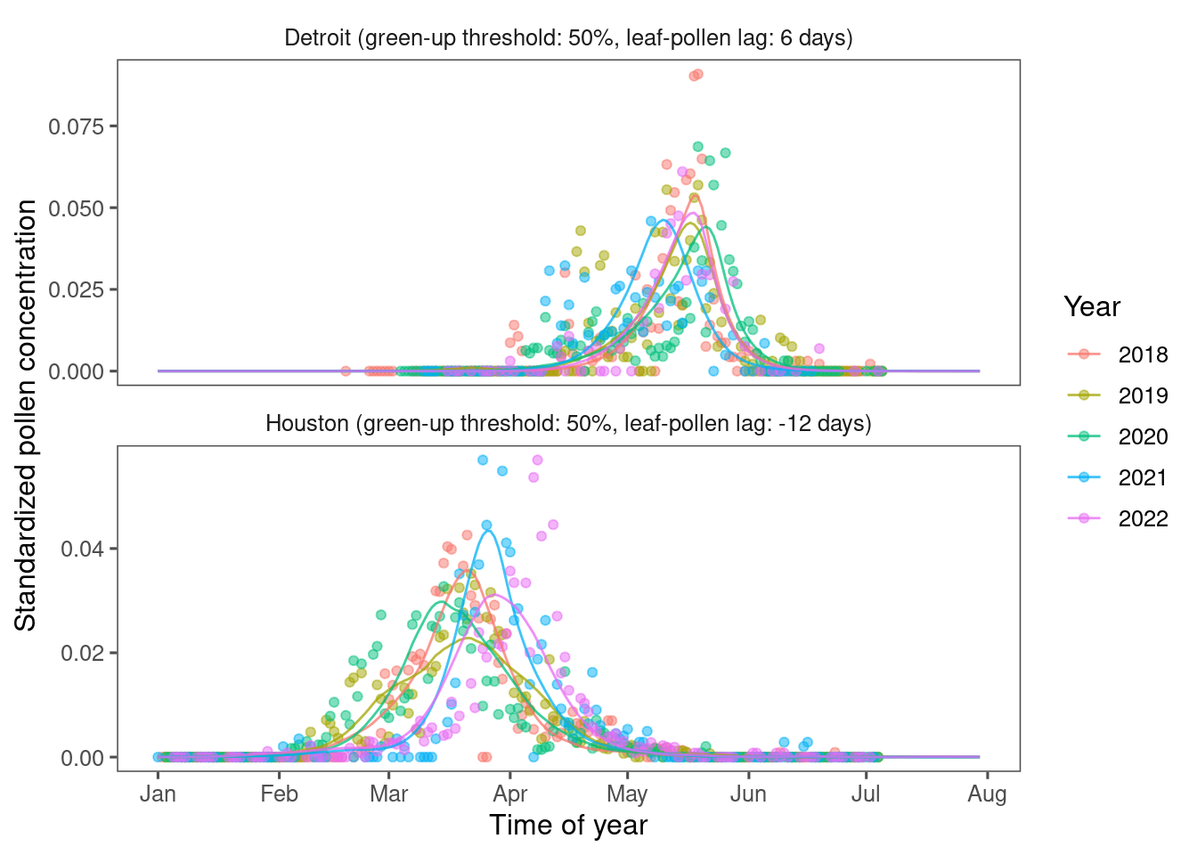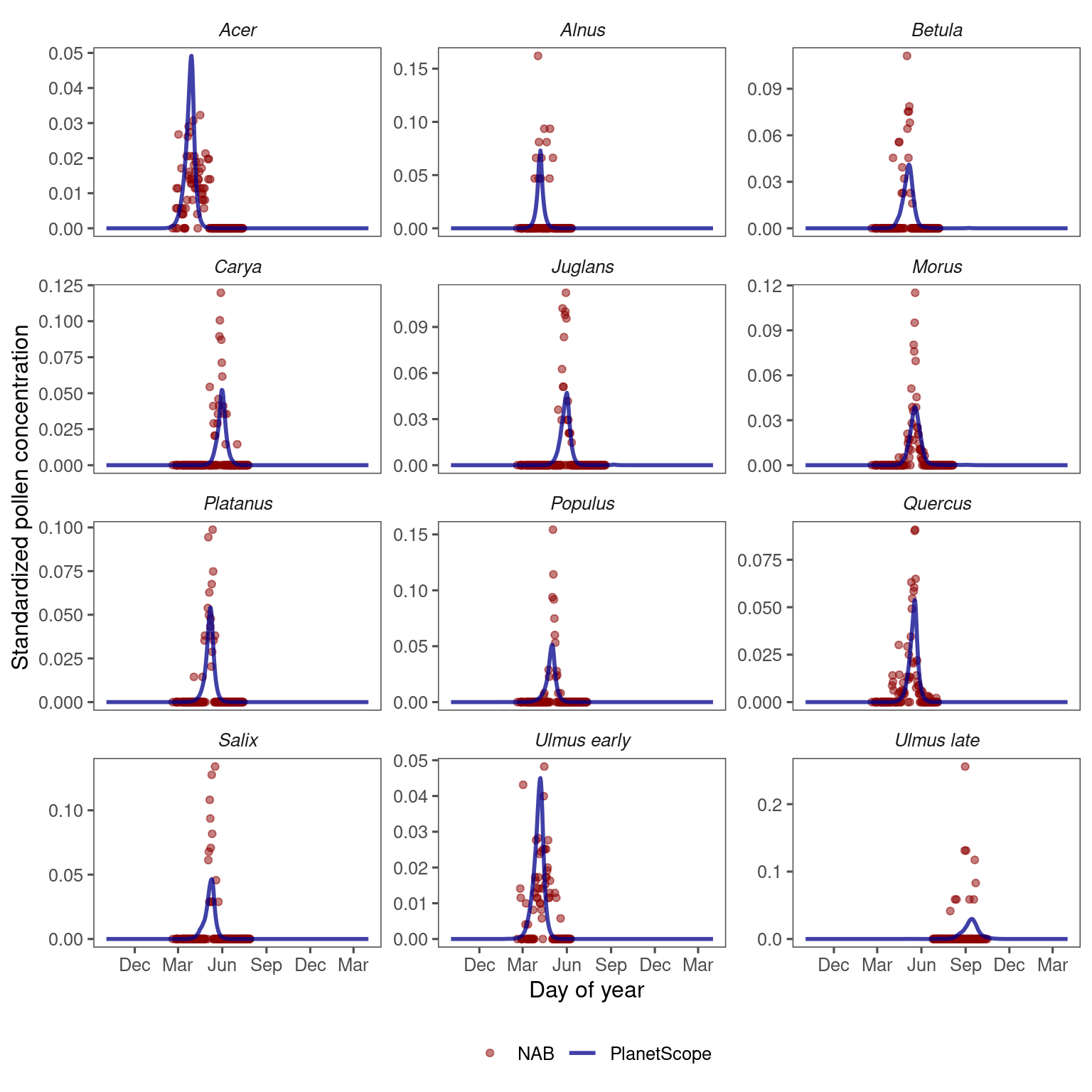 NAB data were used to calibrate and validate city-level pollen phenology.