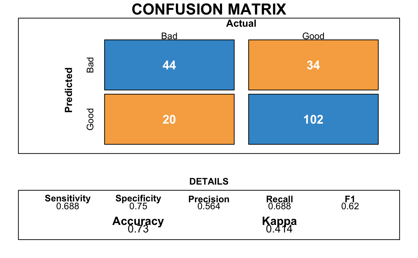 Again, this models shared an accuracy of 0.73.