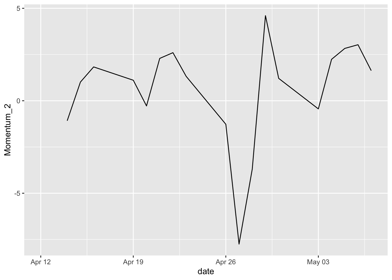 mutate(Momentum_2 = momentum(close, n= 2)) %>%